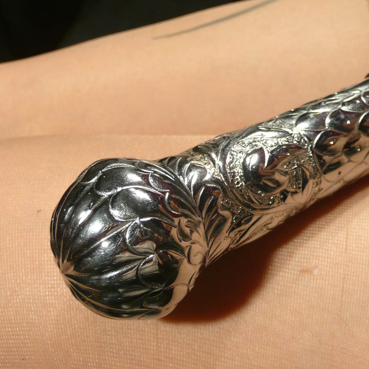 Die Kombination mit dem kunstvoll verzierten Metallgriff macht den besonderen Charakter dieses Slappers aus.