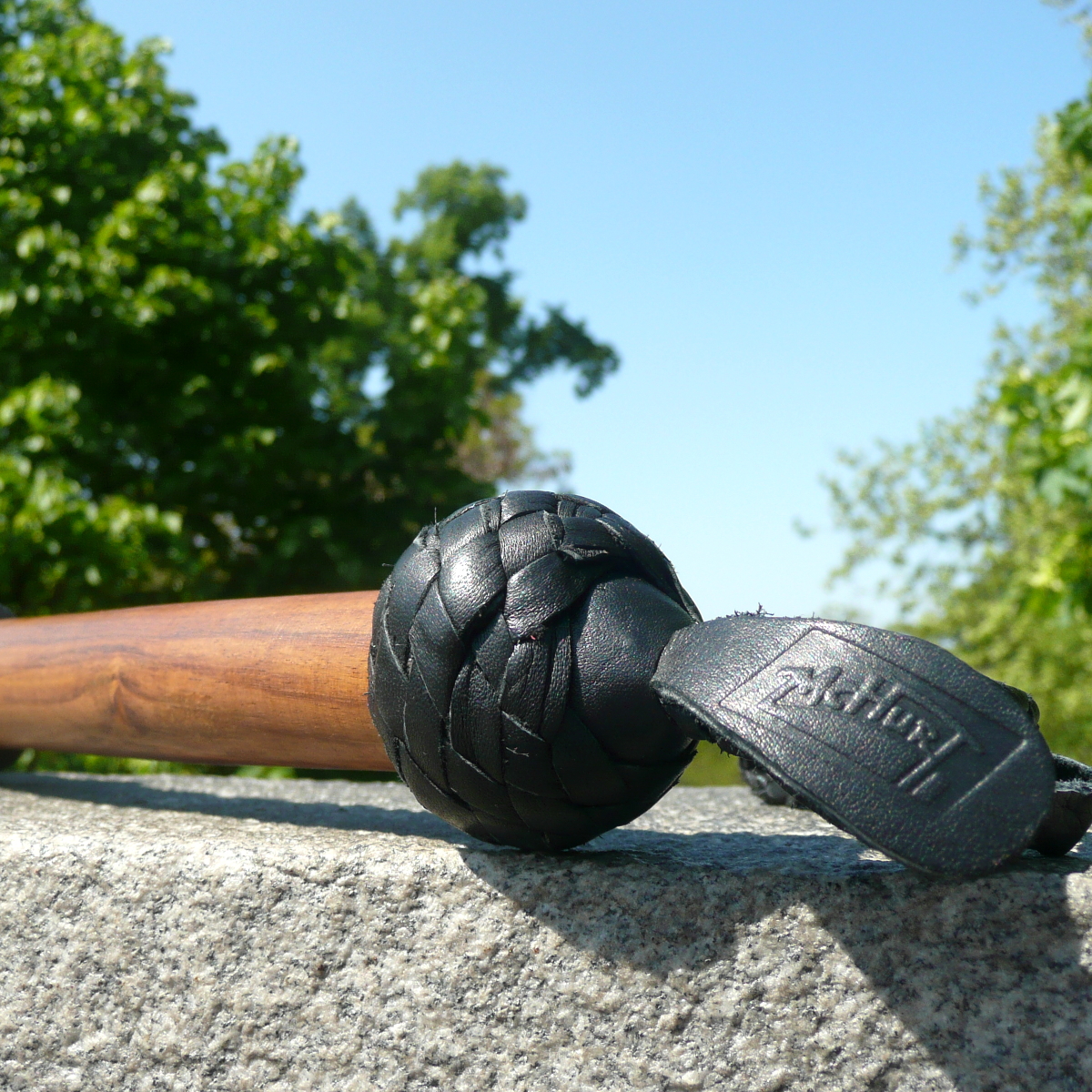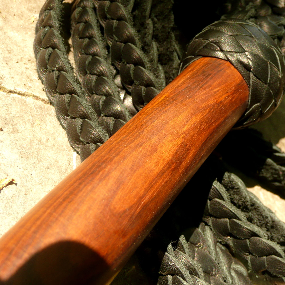 Der Griff besteht aus poliertem Edelholz, die Enden sind im asiatischen Stil umflochten.