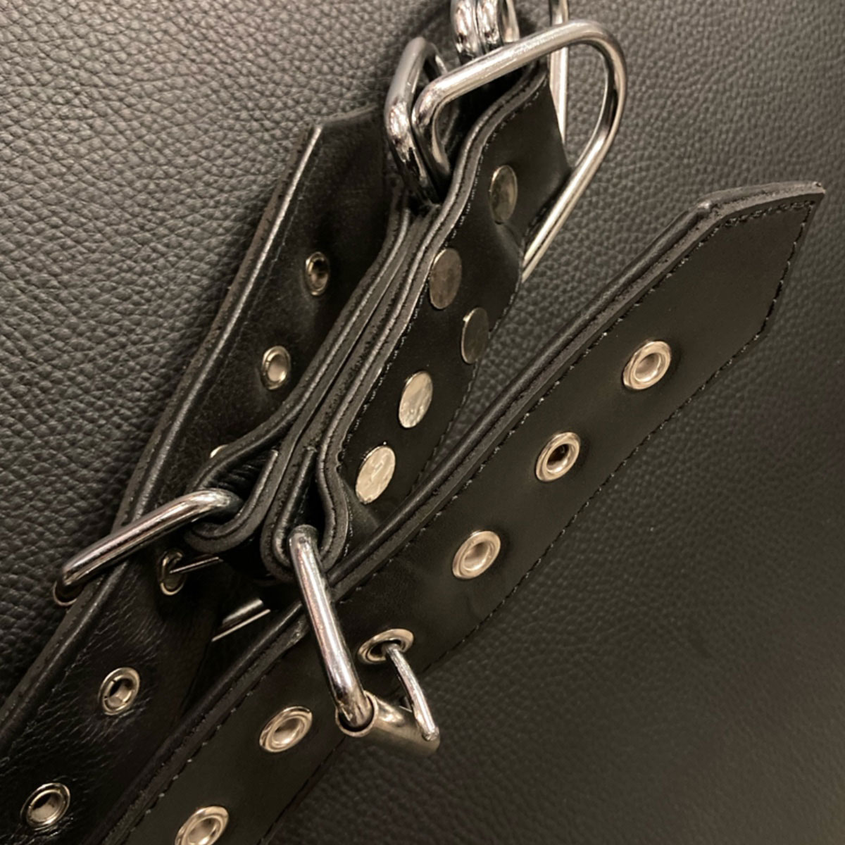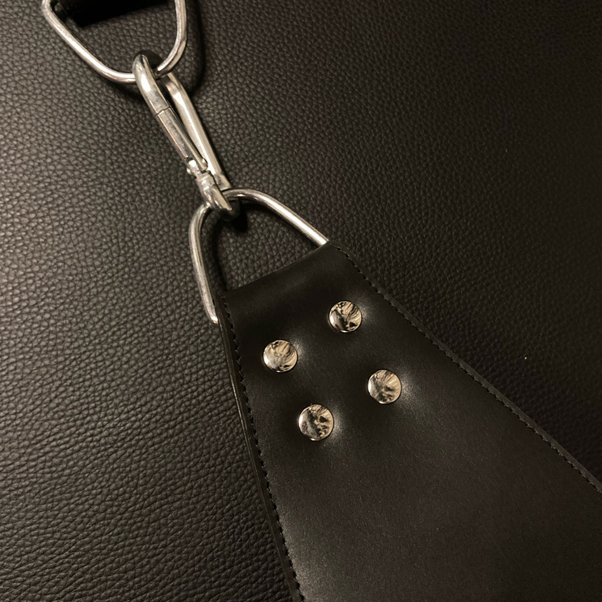 Die Fesselmanschetten zum Fixieren der Hände und Füße sowie die gezeigten Karabinerhaken sind nicht im Lieferumfang enthalten!