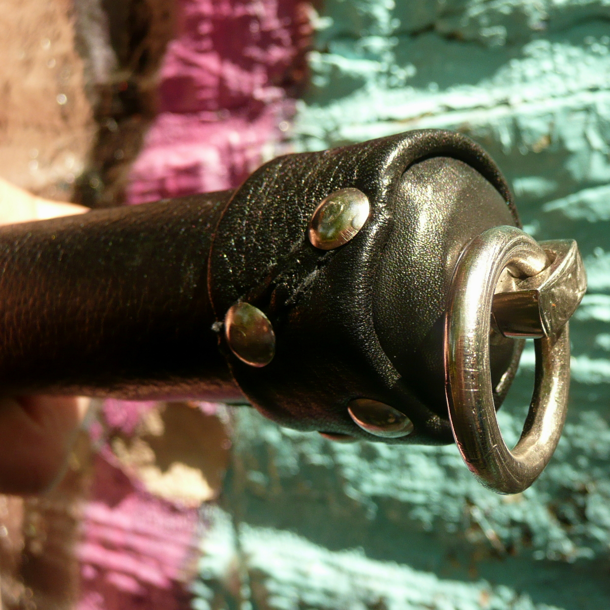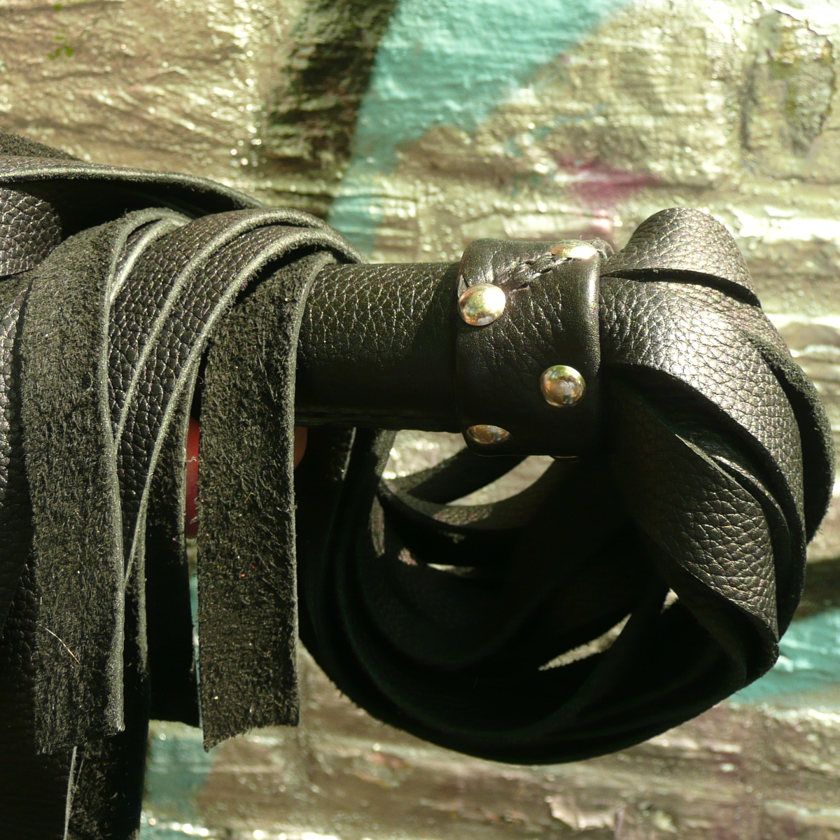"Aiman" (arab.: "Der Glückliche") Die Wirkung dieses Floggers variiert von soft bis leicht-streng. Er ist besonders geeignet zum "Aufwärmen", kann aber auch -bei entsprechend starker Anwendung- intensivere Wirkung entfalten im Sinne einer kräftigen Massage mit leichtem Schmerz. So gibt er das Glück seines Namens weiter, bereitet aber möglicherweise auch auf die heftigeren Szenarien vor, die möglicherweise folgen? Der Griff besteht aus poliertem Edelholz, die Enden sind im asiatischen Stil umflochten.Die glatten Tails werden aus ca. 2 Millimeter dickem Anilin-Leder geschnitten. Länge der Tails ca. 48 Zentimeter, Gesamtlänge ca. 72 Zentimeter