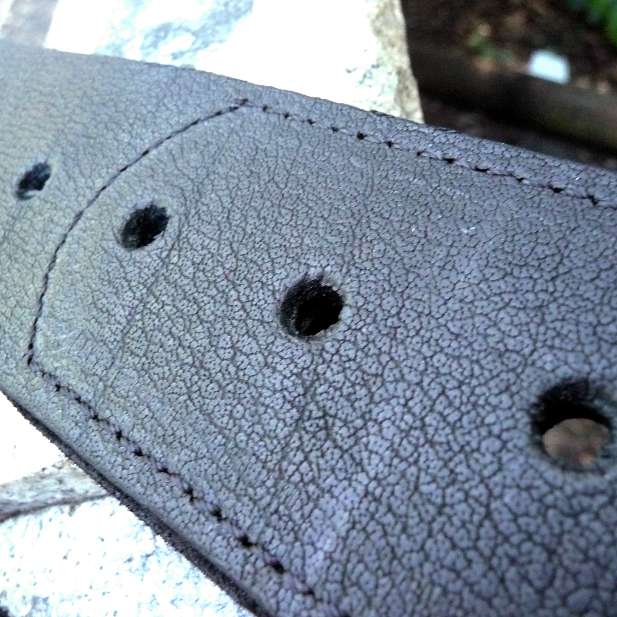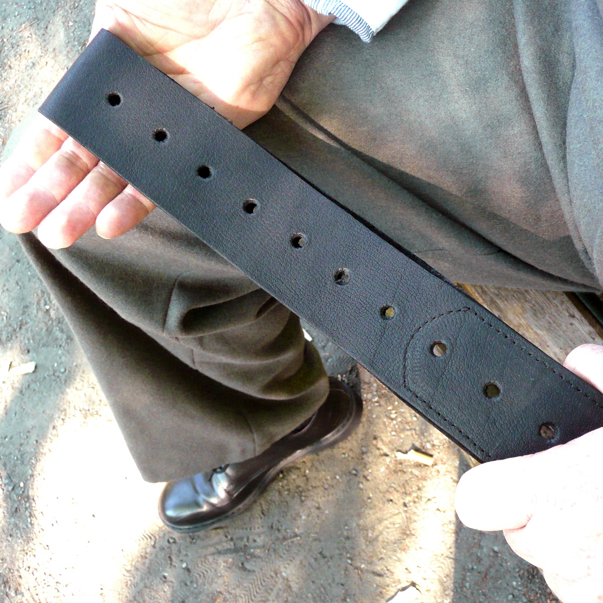 Daddys Belt wird aus unserem speziellen Soft-Riemenleder genäht, das so angenehm in der Hand liegt, daß wir unser erstes Exemplar kaum mehr weg legen mochten und den ganzen Tag damit herum gespielt haben.