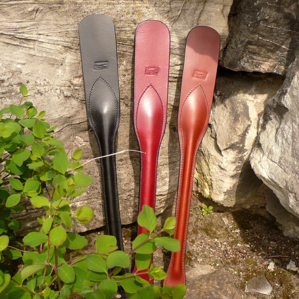 Wir fertigen unsere Dogging Bats aus einem besonders hochwertigen englischen Zaumzeug-Leder (s. Zusatz-Information unten) in folgenden Farbvarianten: