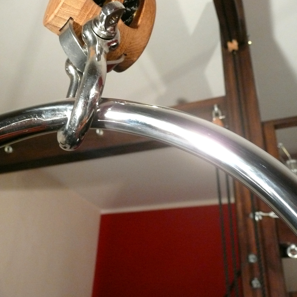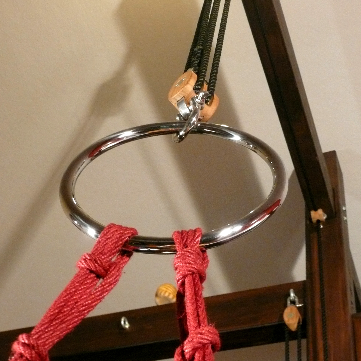 Compared to smaller rings, the inner diameter of approx. 20 centimetres offers the advantage that ropes, fed side-by-side through the ring, cannot easily slip over each other and be damaged in the process.