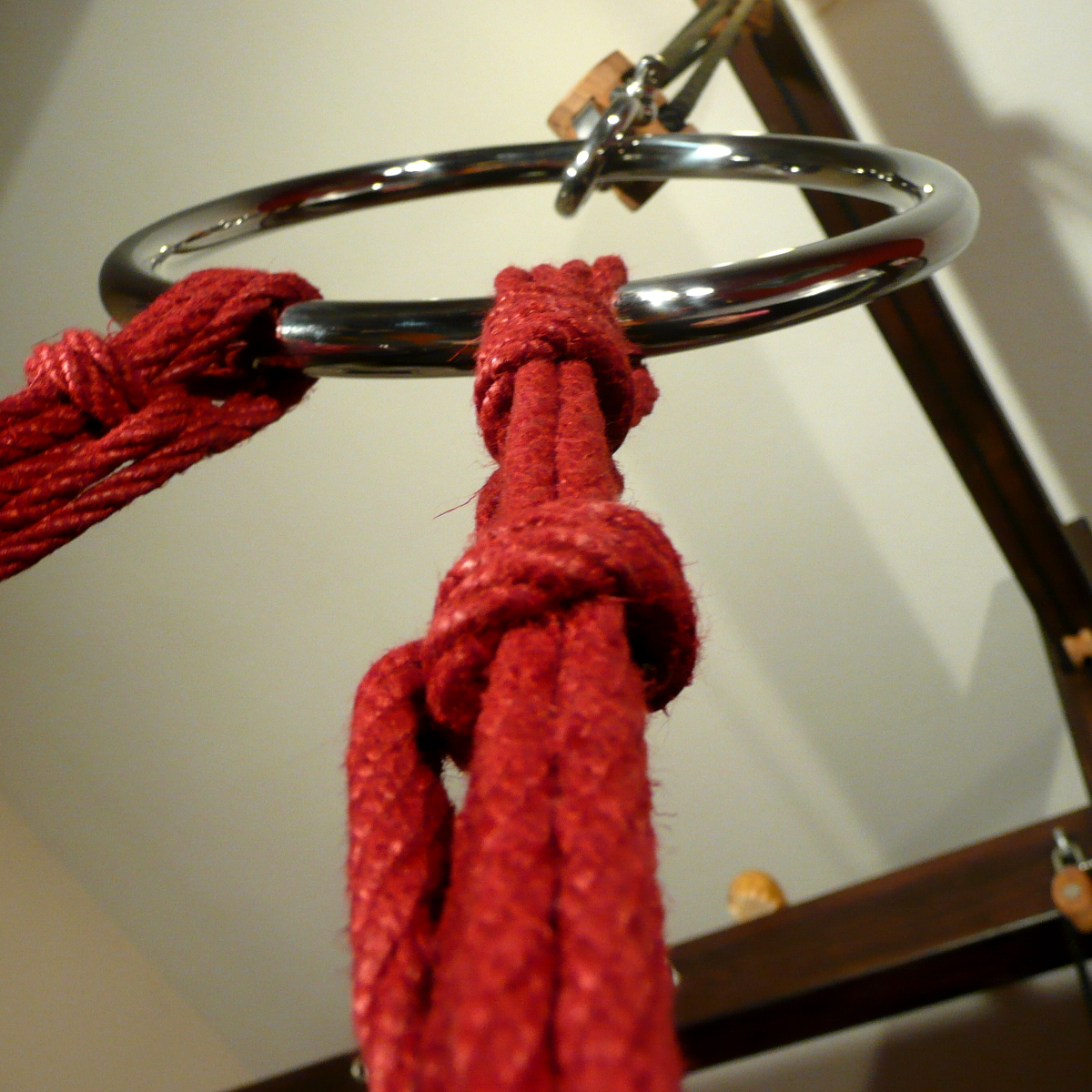 Our bondage rings are carefully shaped from 16 millimetre strong stainless steel, welded and then brightly polished.