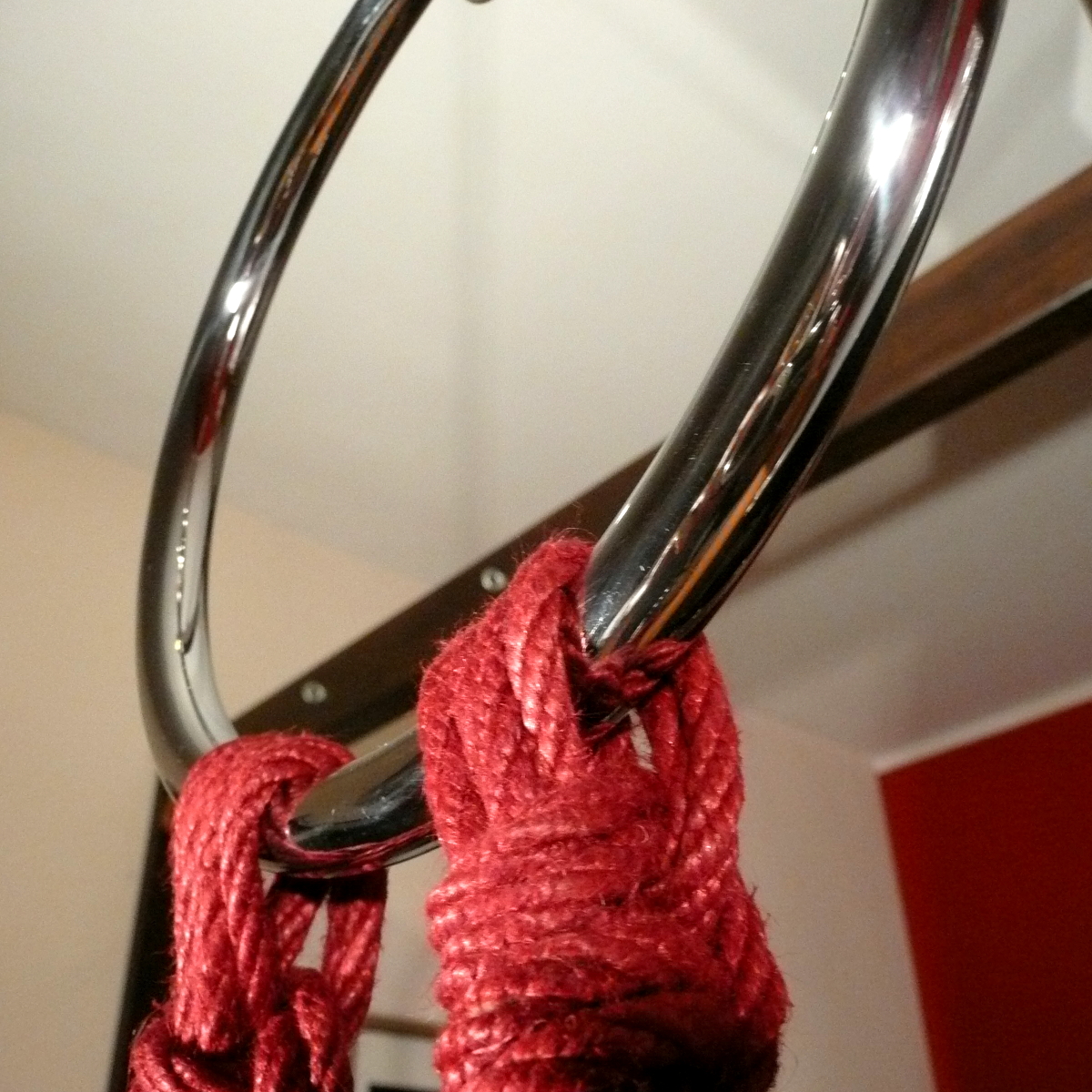 Hemp Rope Set, 4-strand, ready to bind This set is the Shibari basic equipment for more elaborate bondage positions, for example suspension. The ropes are almost always doubled up and are lengthened with the aid of knots at the end using a special technique. Our hemp ropes are twisted from highest-grade hemp and consist of four strands. The raw material is specifically pre-treated, so hardly any rough fibres can be found on the rope. The grip, and therefore also the sensation on the skin, is incredibly soft and pleasant. Included in delivery: 7 Hemp ropes, at 8 metres long each, bordeaux-red. (Diameter approx. 6 millimetres)