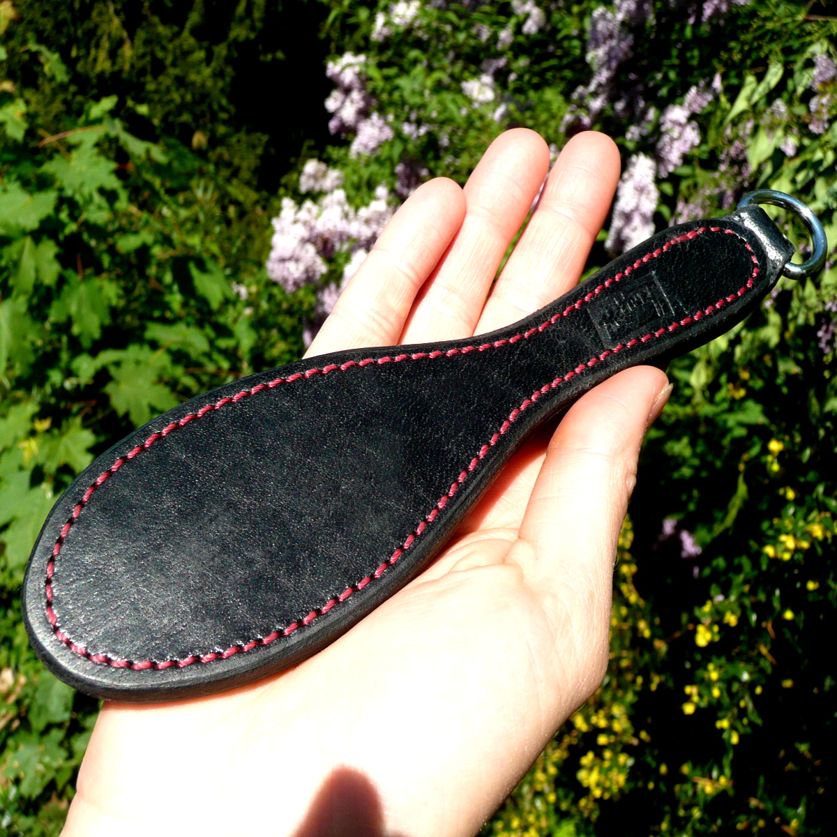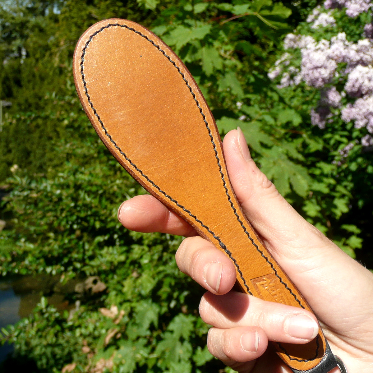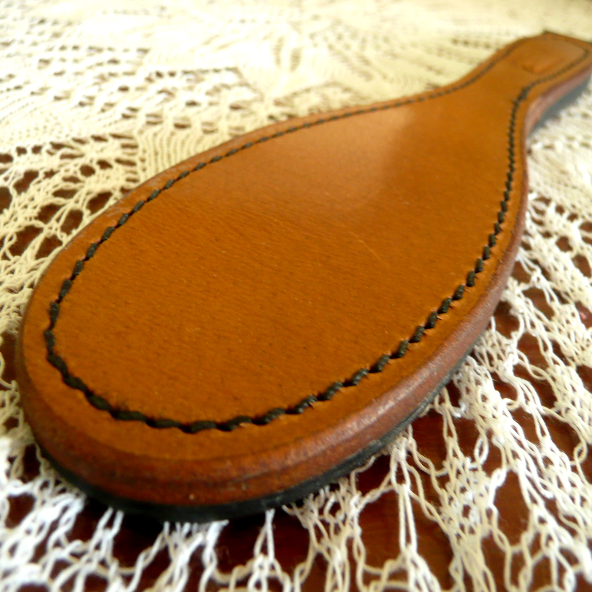 The paddle is sewn from two very rubust layers of leather. It has exactly the right flexibility to have a big effect, despite its small format!