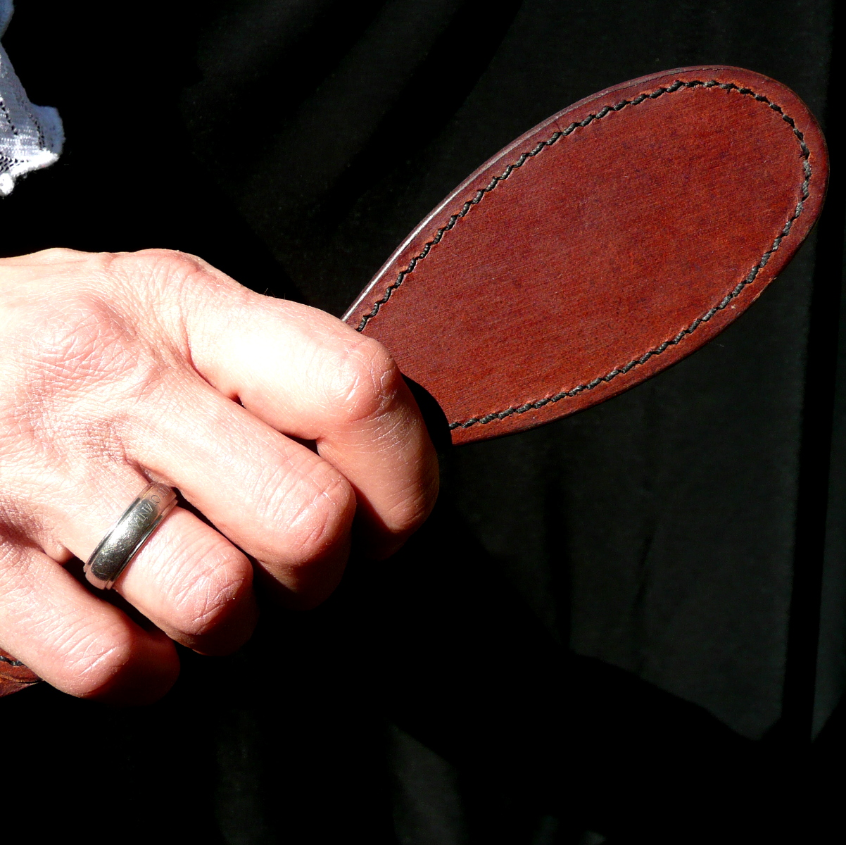 This small oval-paddel reminds one of a hairbrush, which mother took out of her dresser when she had to reprimand her offspring.