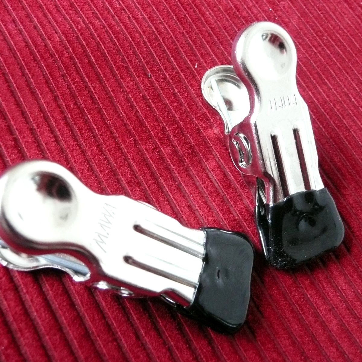 These grips distribute the pressure over a relatively large area and hardly ever slip off because of their plastic covers.Accordingly with their hooks these clamps are particularly suitable for attachment of weights or connecting cords or . . . or . . . or . . . We carry MAWA-grips with two varyingly strong springs. With its really powerful pressure of the spring this strong version is definitely a toy for the harder play. Female nipples will not bear these grips in nine times out of ten, for male it will be a challenge. But other body parts, like the intimate areas for example, are receptive for the use of MAWA grips and weights, too. However, with this strong version please keep an eye not to leave the grips on the object too long, as possibly the blood circulation will no longer be facilitated. Length approx. 7 centimetres (incl.hook) Delivery: 1 pair
