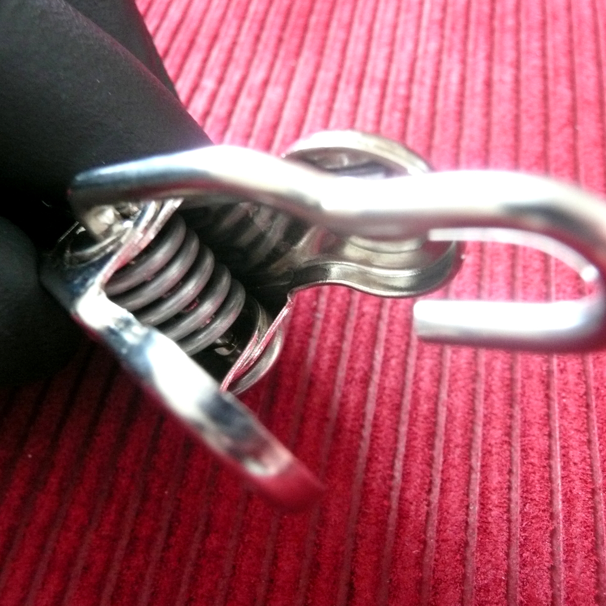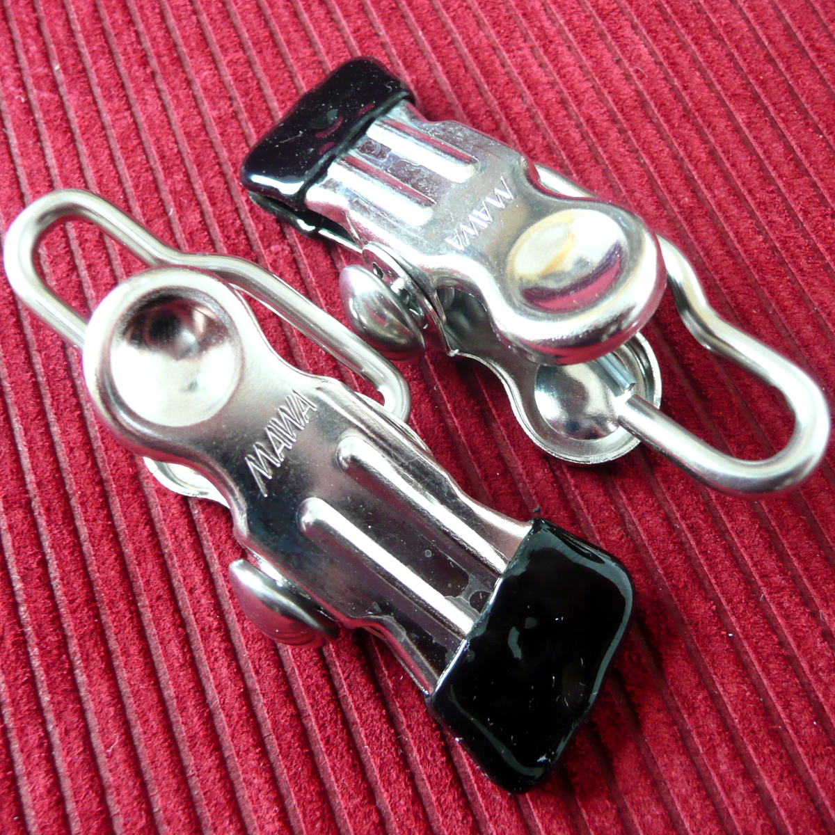 These grips distribute the pressure over a relatively large area and hardly ever slip off because of their plastic covers.Accordingly with their hooks these clamps are particularly suitable for attachment of weights or connecting cords or . . . or . . . or . . . We carry MAWA-grips with two varyingly strong springs. With its really powerful pressure of the spring this strong version is definitely a toy for the harder play. Female nipples will not bear these grips in nine times out of ten, for male it will be a challenge. But other body parts, like the intimate areas for example, are receptive for the use of MAWA grips and weights, too. However, with this strong version please keep an eye not to leave the grips on the object too long, as possibly the blood circulation will no longer be facilitated. Length approx. 7 centimetres (incl.hook) Delivery: 1 pair