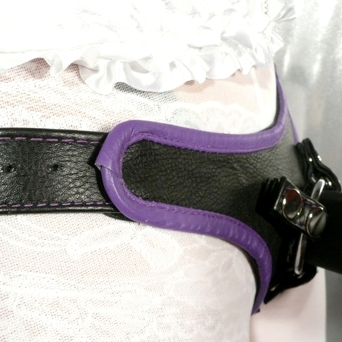 This harness is a colour-contrasting version of our Strap-On Harness Classic.