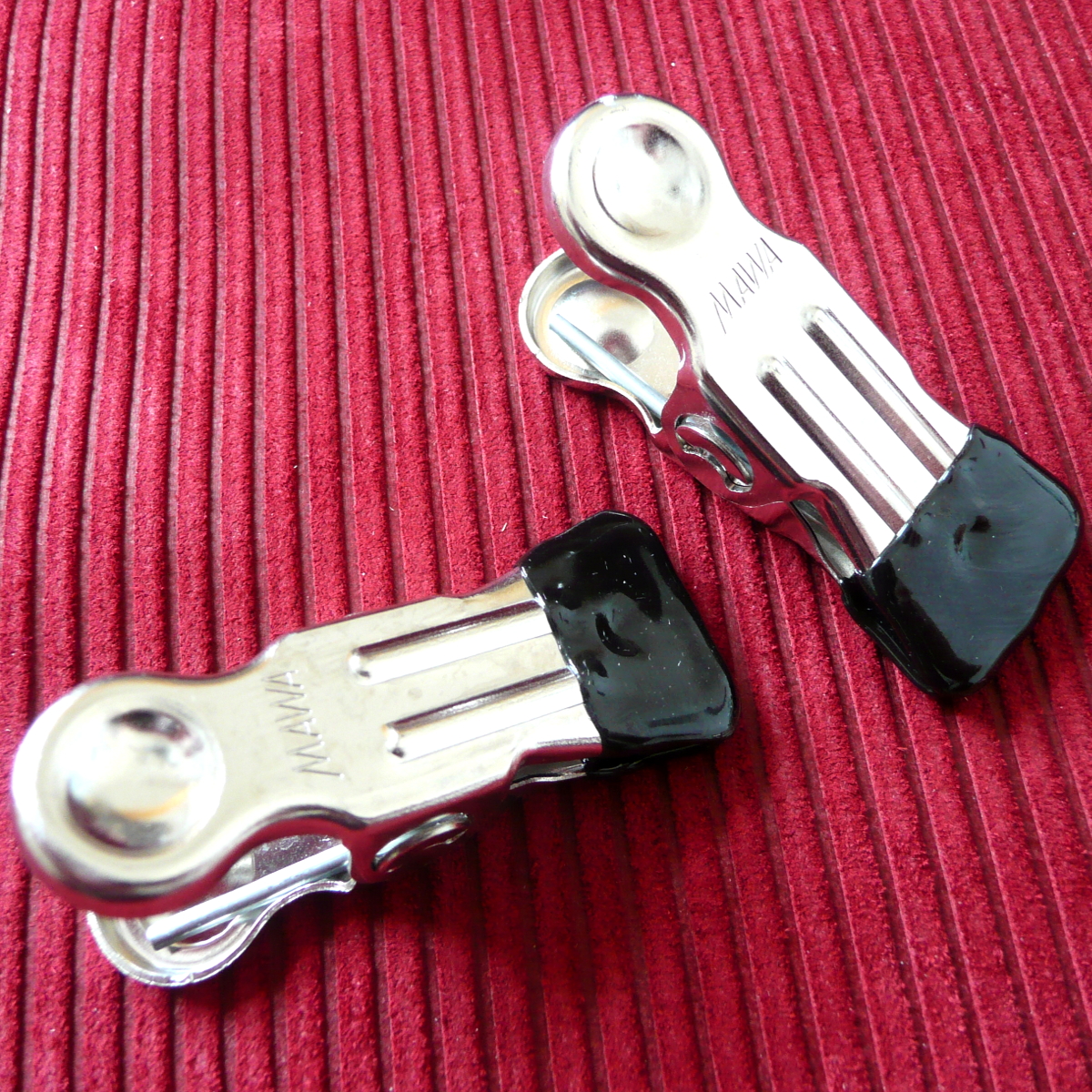 These grips distribute the pressure over a relatively large area and hardly ever slip off because of their plastic covers.Accordingly with their hooks these clamps are particularly suitable for attachment of weights or connecting cords or . . . or . . . or . . . We carry MAWA-grips with two varyingly strong springs. With its really powerful pressure of the spring this strong version is definitely a toy for the harder play. Female nipples will not bear these grips in nine times out of ten, for male it will be a challenge. But other body parts, like the intimate areas for example, are receptive for the use of MAWA grips and weights, too. However, with this strong version please keep an eye not to leave the grips on the object too long, as possibly the blood circulation will no longer be facilitated. Length approx. 7 centimetres (incl.hook) Delivery: 1 pair