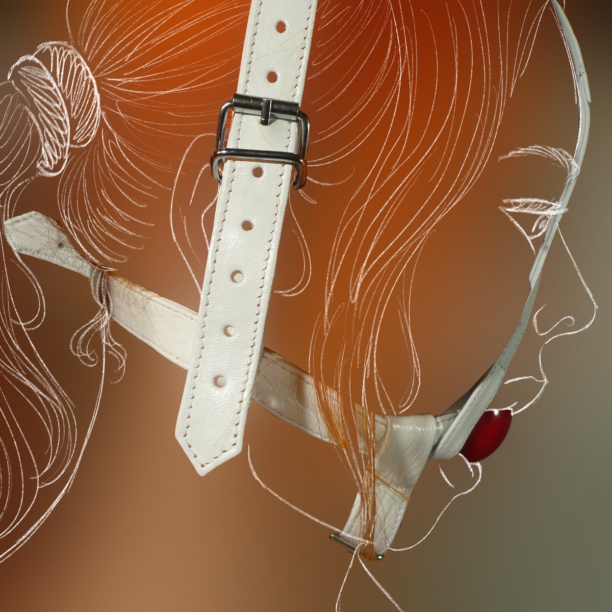 This gag harness can be worn very comfortably and for a long time if needed. It leaves relatively few marks on the face, as the straps are stitched from soft garments leather. The length of the straps is individually adjustable with buckles and therefore the harness is easily adaptable. At the connecting points the straps run through sewn leather thread eyes, to avoid skin irritations or marks from studs.