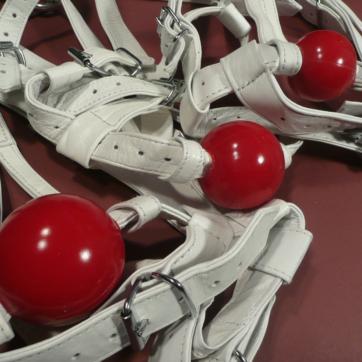 The belts and harnesses for our ball gags are stitched fom several layers of soft garments leather which is produced with european tanning and colouring agents.