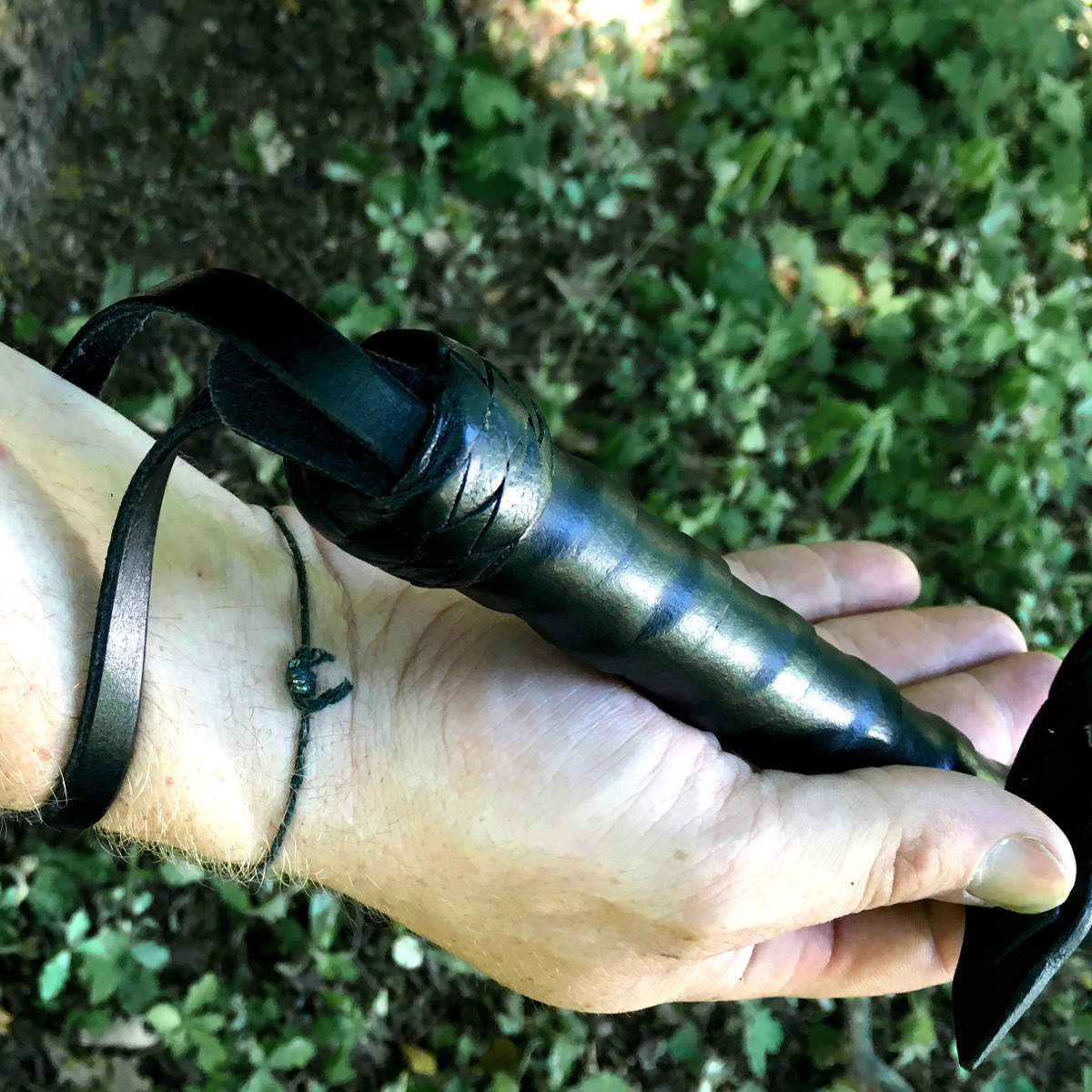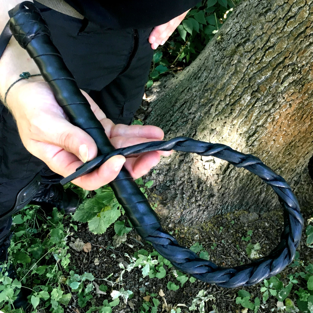 Der fiese Charakter entsteht vor allem aus der fast bis zur Spitze reichenden Flechtung aus geöltem Sattelleder.
