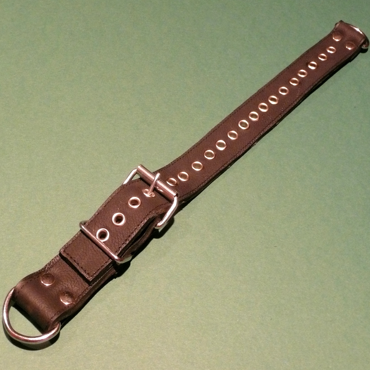 Stufenlos-Spanner, kurz (mit Triangel-Schraubösen) Der Stufenlos-Spanner ist die superpraktische Lösung, wenn Sie eine Fesselung während des Spiels allmählich immer unbequemer machen wollen! Dabei handelt es sich um einen Spanngurt, der zwischen zwei Objekten wie z.B. Fesselmanschette und Bettstrebe eingehakt wird und dann ganz nach Bedarf stufenlos enger gezogen werden kann, ohne irgendeine Schnalle öffnen zu müssen oder einen Mechanismus zu betätigen. Einfach den Gurt mit den Schraubösen zwischen zwei Objekten einhängen und an dem offenen Ende ziehen, schon wird er immer kürzer! Die Triangel-Schraubösen können bei Bedarf auch mit einem passenden Schraubenschlüssel gesichert werden und lassen sich dann nicht mehr von unnützen Fingern auffummeln! Das Prinzip ist einfach: Die kurze Hälfte des Gurtes endet in einem doppelten D-Ring. Das andere lange Ende des Gurtes ist offen und wird durch die beiden D-Ringe hindurch geschlungen (s. Darstellung im Foto!) Dabei werden die Ringe so ineinander gedrückt, das sie eine Bewegung des Gurtes nur noch in eine Richtung zulassen, nämlich kürzer. Um den Gurt wieder zu entspannen muß der Zug deutlich zurück genommen werden. Erst dann lassen sich die Ringe soweit lösen, daß der Gurt wieder zurück laufen kann und länger wird. Diese kurze Version des Stufenlos-Spanners ist verstellbar von maximal 40 Zentimeter auf minimal 15 Zentimeter. Lieferumfang: 1 kurzer Stufenlos-Spanner mit Triangel-Schraubösen (ohne im Bild gezeigte Manschetten, ohne Verschluß- und Verbindungselemente, diese bitte separat bestellen!)