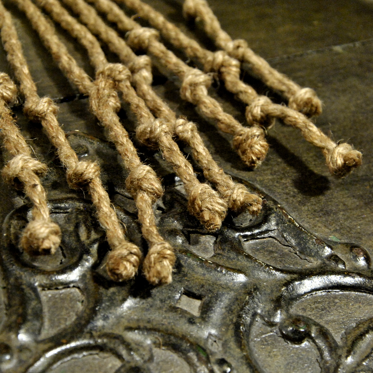 Der Griff der Jute-Katze wird in einer speziellen Knoten-Technik aus etlichen dünnen Jute-Schnüren geknotet.