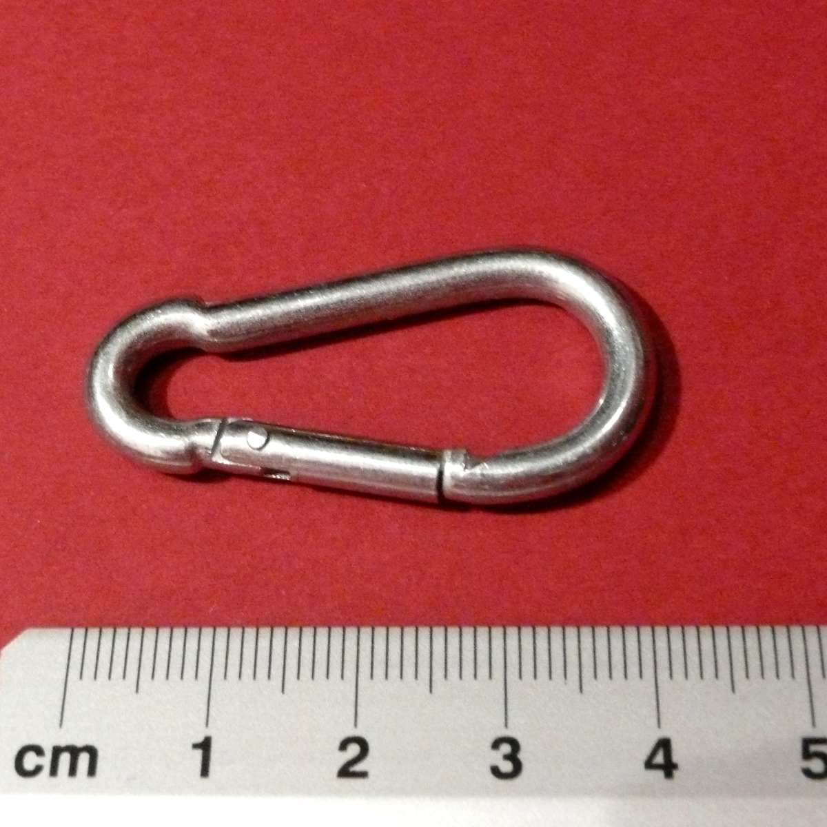 Zierlicher Karabinerhaken aus verzinktem Stahl, für Verbindungen mit zierlichen Ösen und Ketten