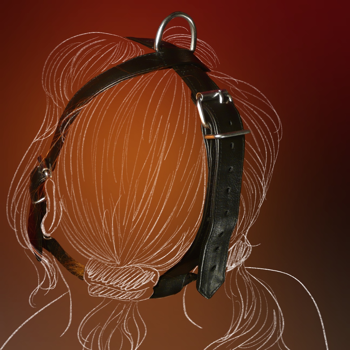 Dieser Knebelharness lässt sich sehr bequem und bei Bedarf auch lange tragen und hinterlässt relativ wenig Spuren im Gesicht, da die Riemen aus weichem Bekleidungsleder genäht werden. Die Riemen sind mit Schnallen individuell in der Länge verstellbar, so daß der Harness optimal anzupassen ist. An den Verbindungspunkten laufen die einzelnen Riemen durch genähte Ösen, damit keine Hautirritationen oder Spuren durch Nieten verursacht werden.