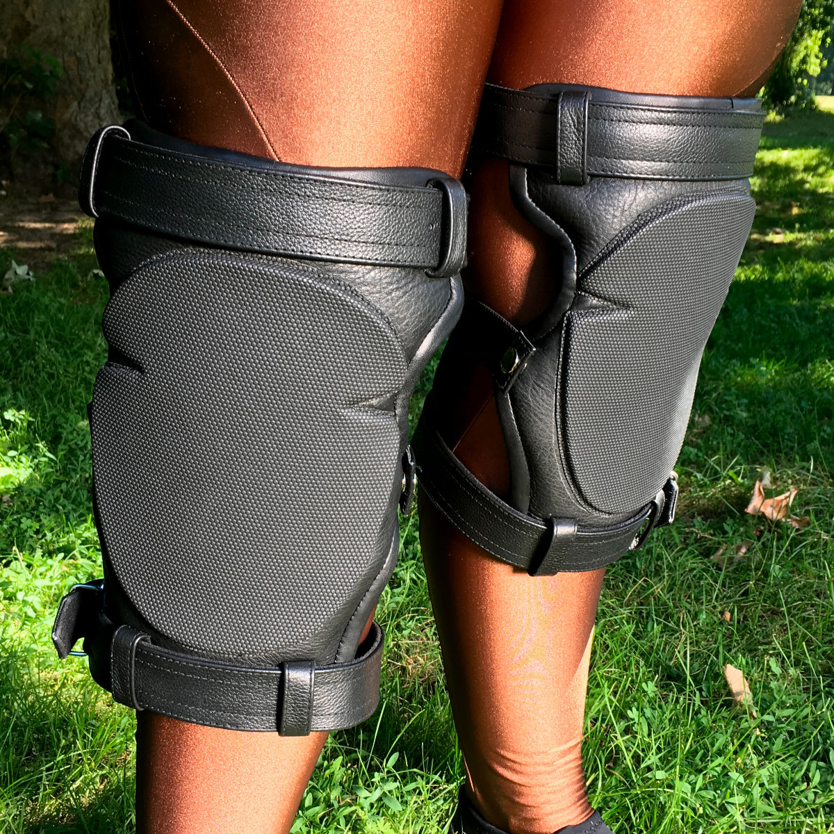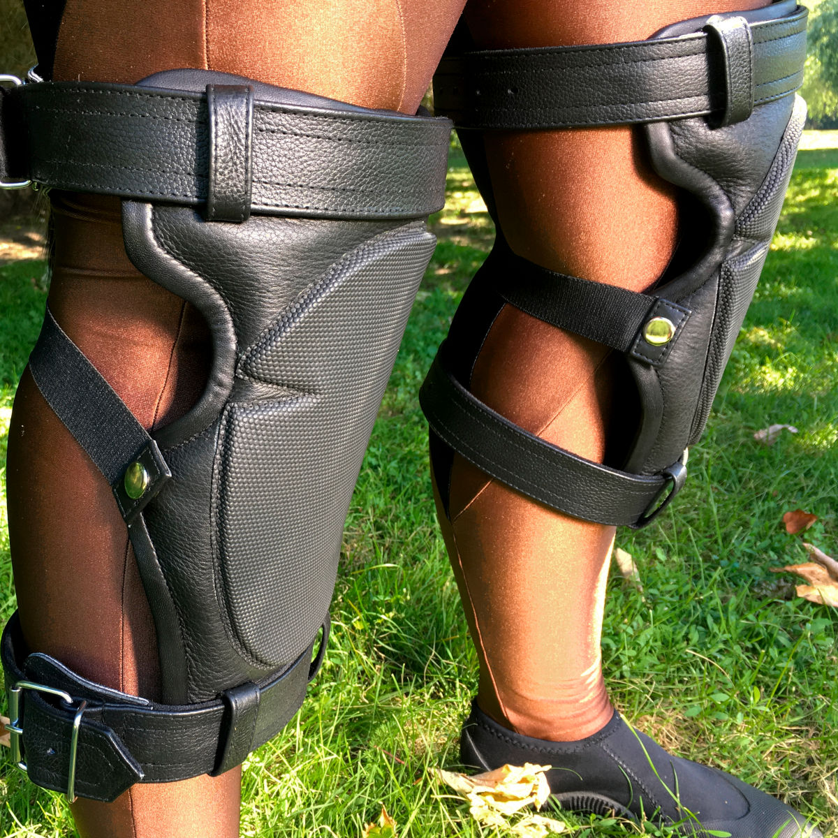 Die Knieschoner sind in zwei verschiedenen Größen erhältlich, wobei sich lediglich die Länge der Riemen für Unter- und Oberschenel ändern: