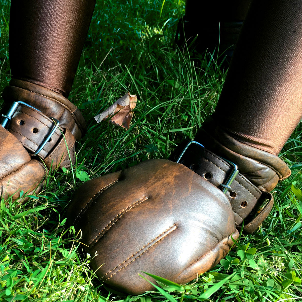 Unfairer Weise ist der menschliche Körper nicht dafür ausgelegt, sich über längere Zeiträume auf allen Vieren fortzubewegen. Wir haben uns aber etwas überlegt, um das sowohl für Pets als auch Subs leichter zu machen.Unsere Knieschoner sind nicht nur aus mehreren Lagen stabilen Rindleder gefertigt, sondern zusätzlich auch noch extra weich gepolstert und auf Kniehöhe mit einem zusätzlichen Schild versehen.Der Schild dienst nicht nur als Polsterschicht, um die Fortbewegung auf allen Vieren zu erleichtern, sondern auch als Abriebschutz zur Schonung des Leders.Die Knieschoner werden oben und unten von stabilen Lederriemen gehalten und haben auf Höhe der Kniekehle ein elastisches Band für optimalen Tragekomfort. Damit sind sie für längeres Knien ebenso geeignet wie für wildes Herumtollen von Pets auf dem Boden. Die Knieschoner sind in zwei verschiedenen Größen erhältlich, wobei sich lediglich die Länge der Riemen für Unter- und Oberschenel ändern: small: für schlanke Beine (Gurtlängen xx und xx Zentimer) large: für kräftigere Beine (Gurtlängen xx und xx Zentimer) (bitte wählen Sie Ihre Größe aus) Lieferumfang: 1 Paar Knieschoner mit zwei Halteriemen in der gewählten Größe sowie einem elastischen Knieband