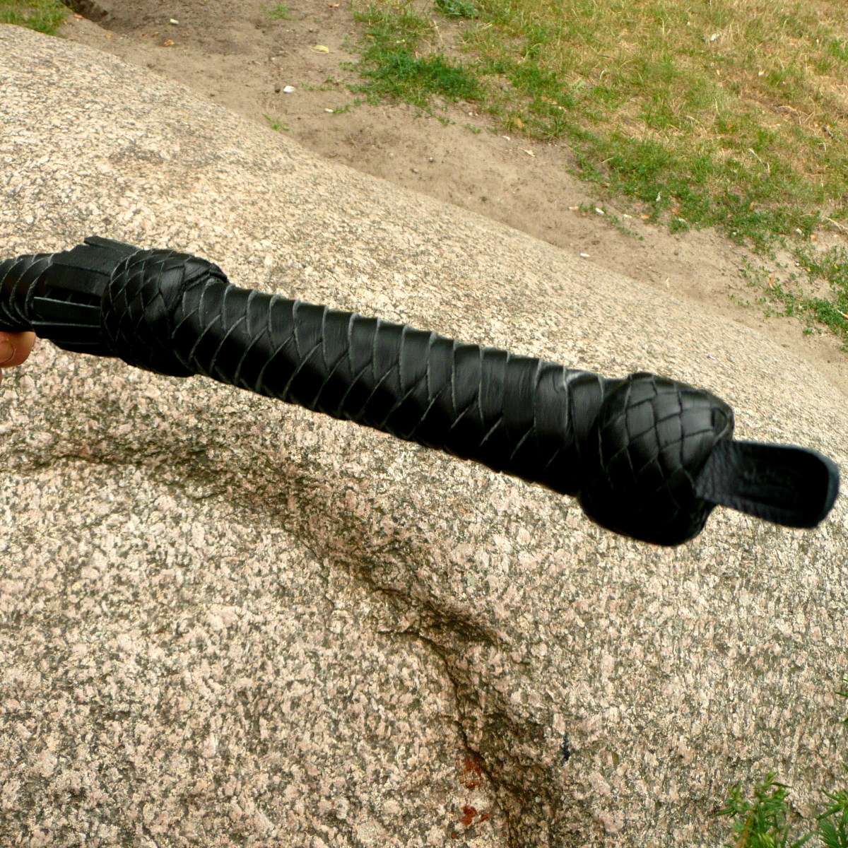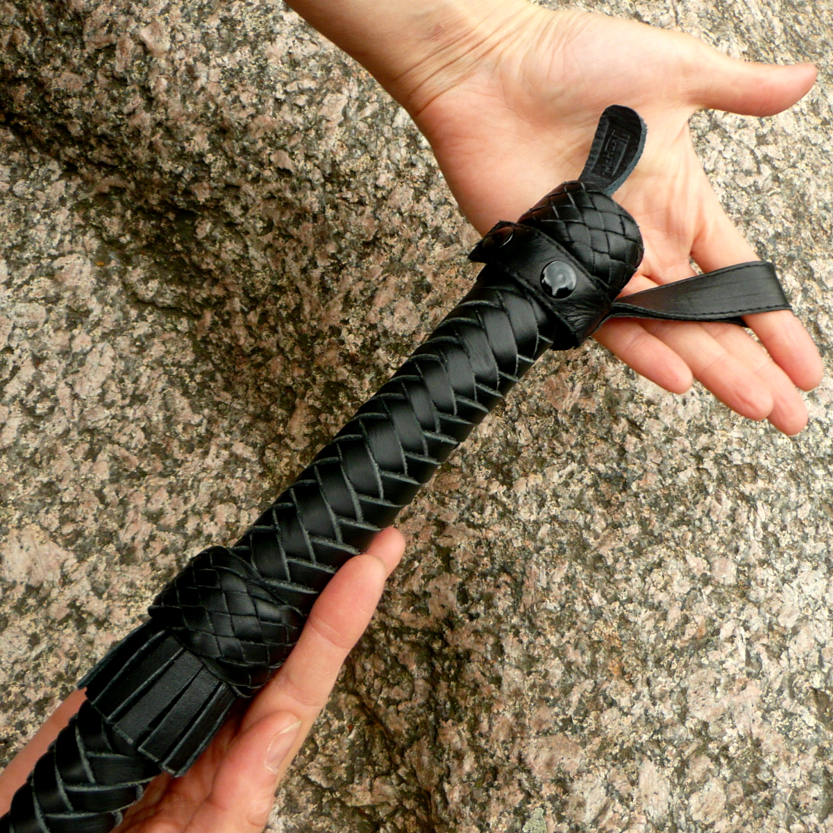 Für den geübten Nutzer haben die kurzen Lederenden aber durchaus eine Funktion. Mit genügend Abstand kann man Ladina so führen, daß nur das Lederbüschel die Haut trifft und eine leichtere Vorbereitung auf das Kommende markiert. Den Wechsel zwischen gut erträglicher und sehr böser Wirkung der Schläge kann man dann durch eine Variation des Abstands zum Objekt von nur wenigen Zentimetern erzielen.