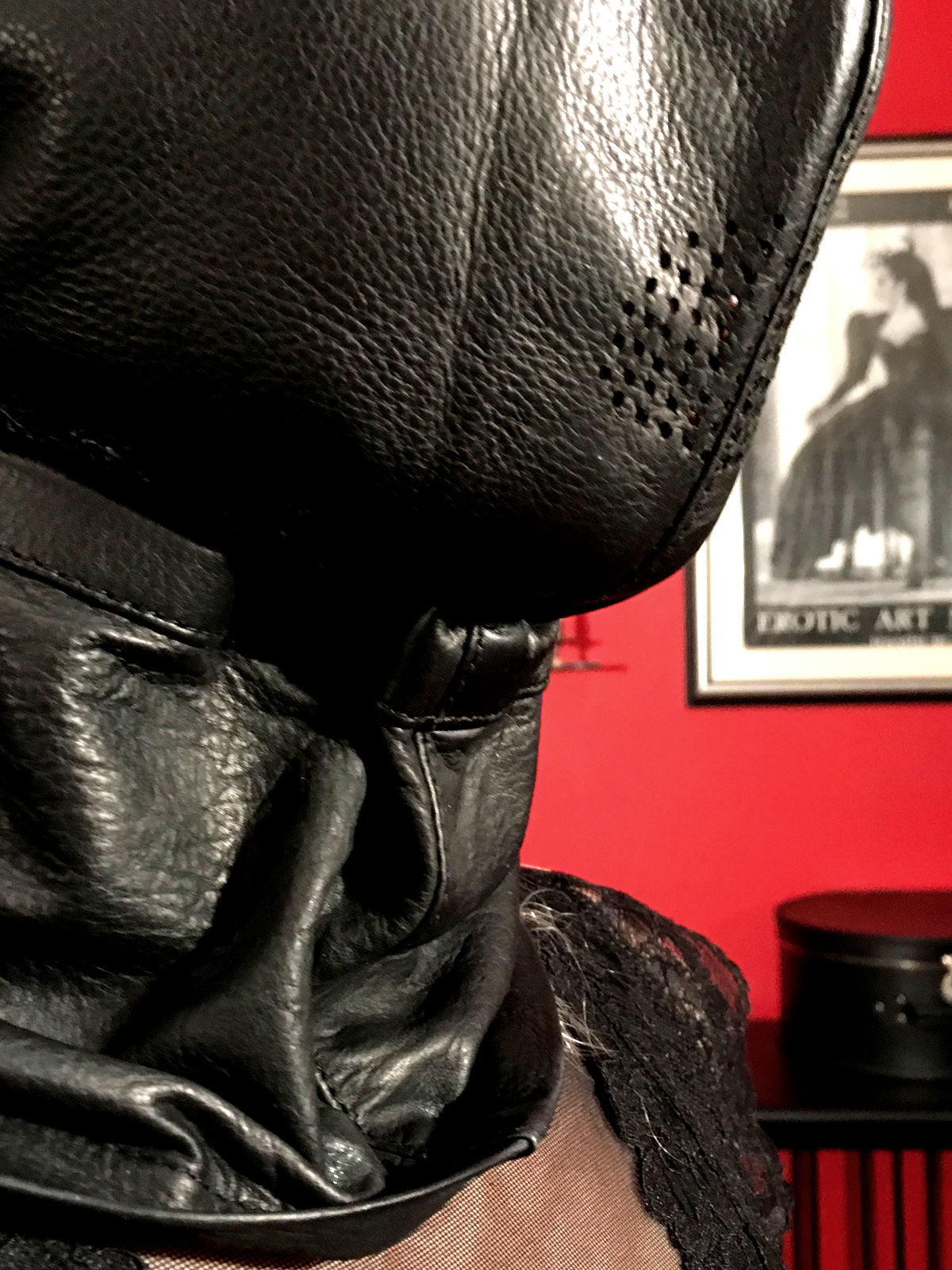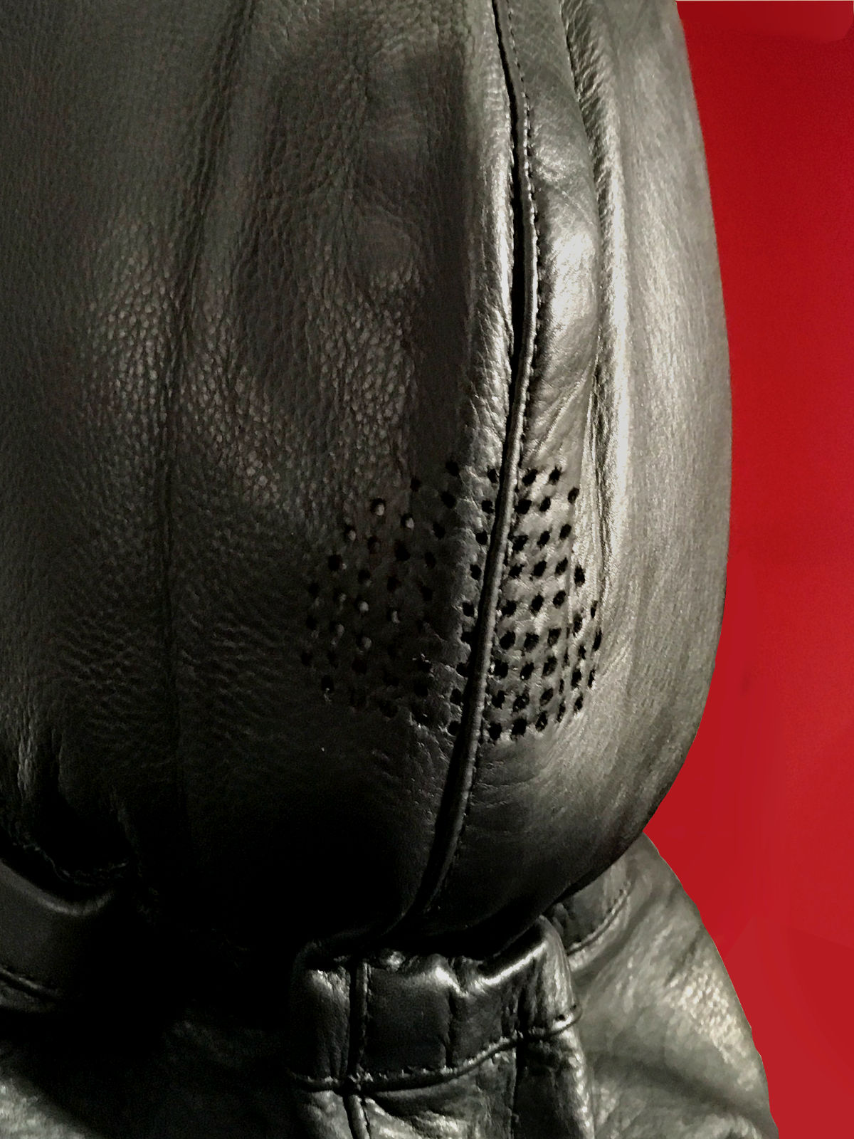 So atemberaubend wir auch dieses Leder finden mögen, unsere Kaputzenmaske bietet dennoch eine Perforierung im Mundbereich, um genügend Atemluft zu gewährleisten.