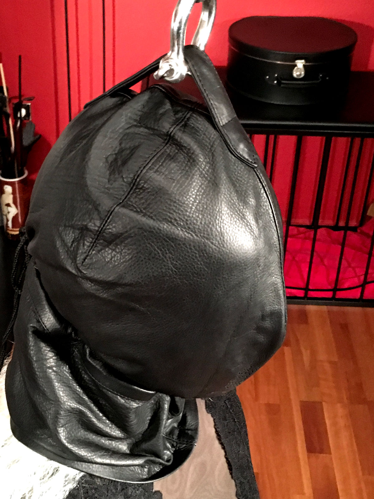 Diese Maske erinnert an den schwarzen Sack, den wohl schon so manch einer in seinen Phantasien über den Kopf gestülpt bekam - oder stülpte.