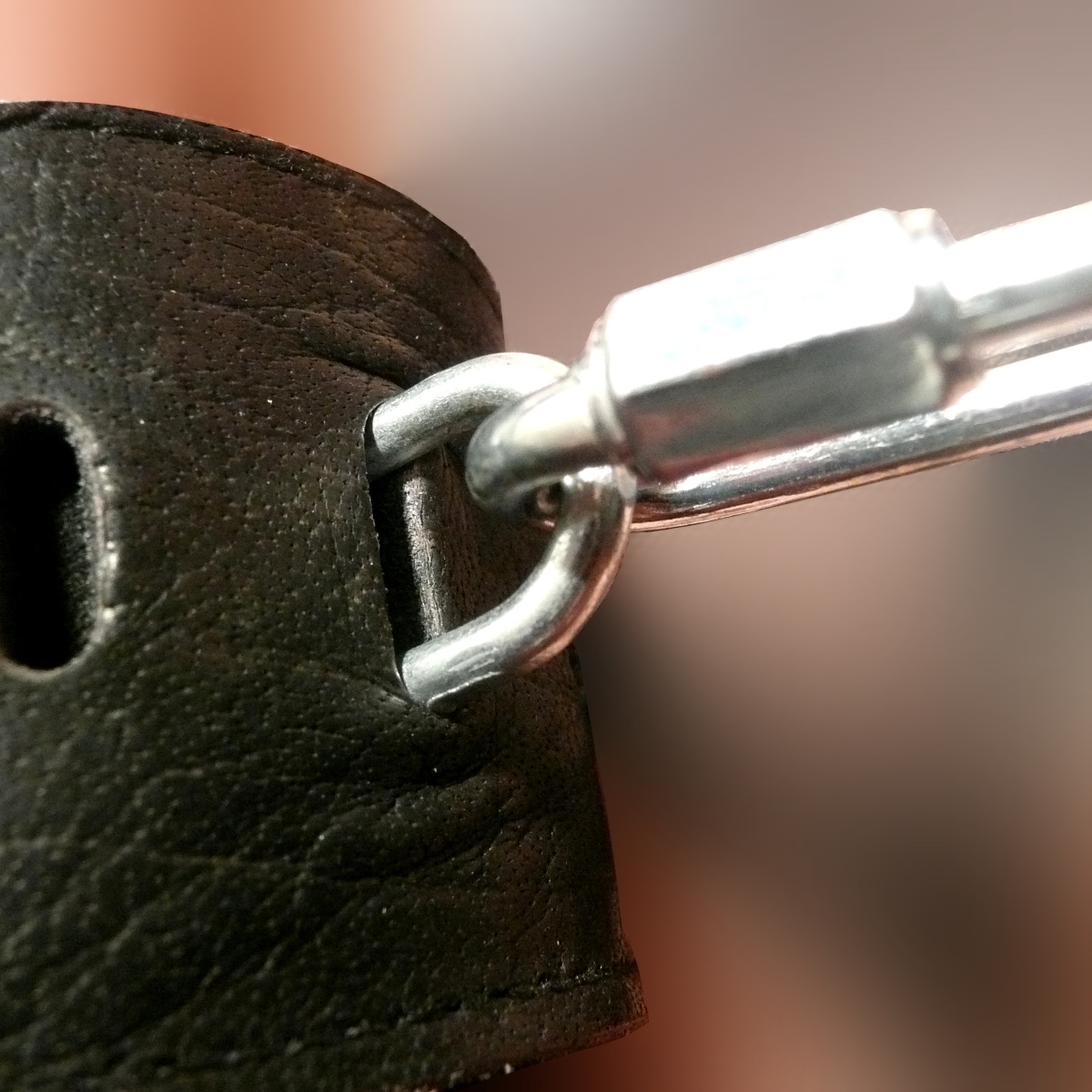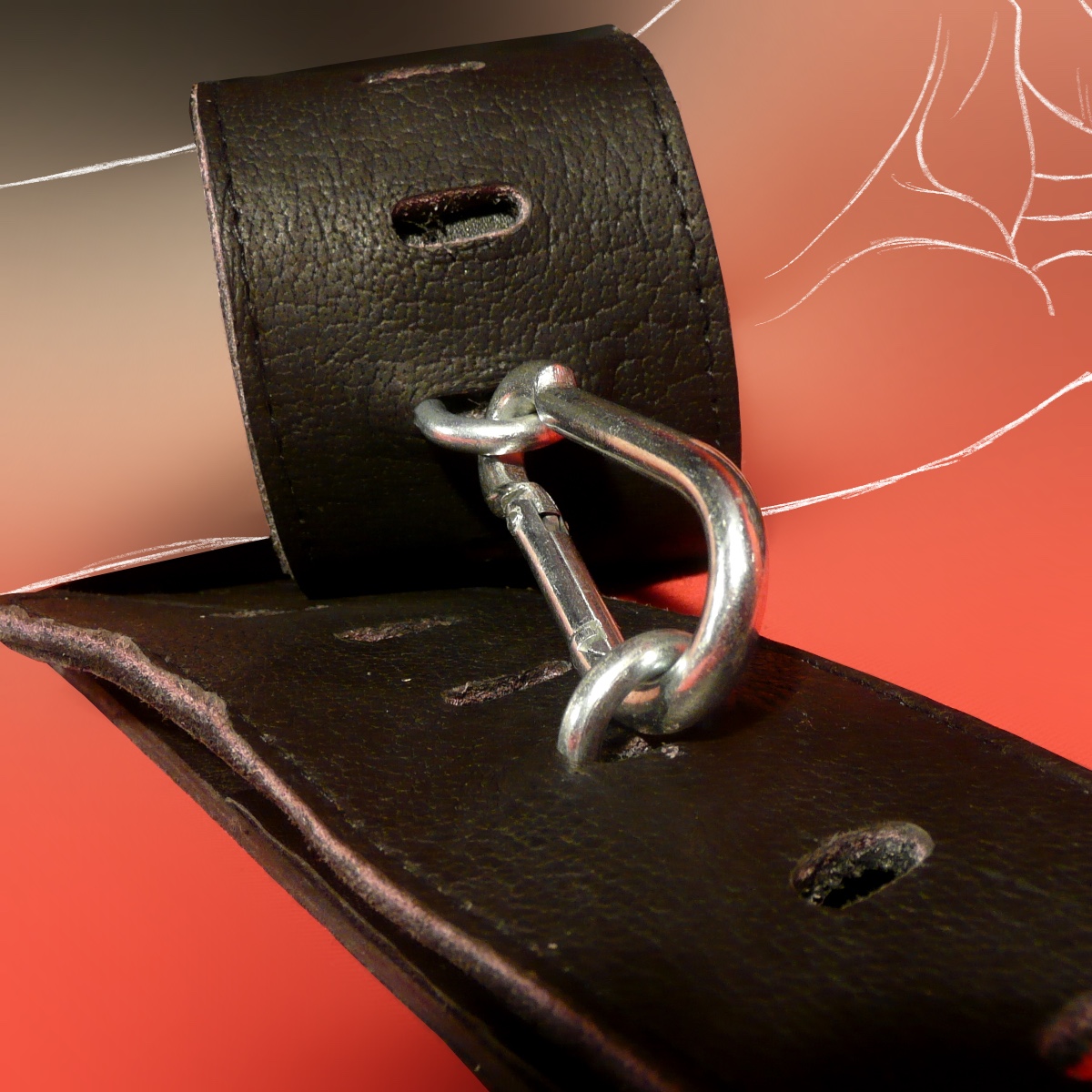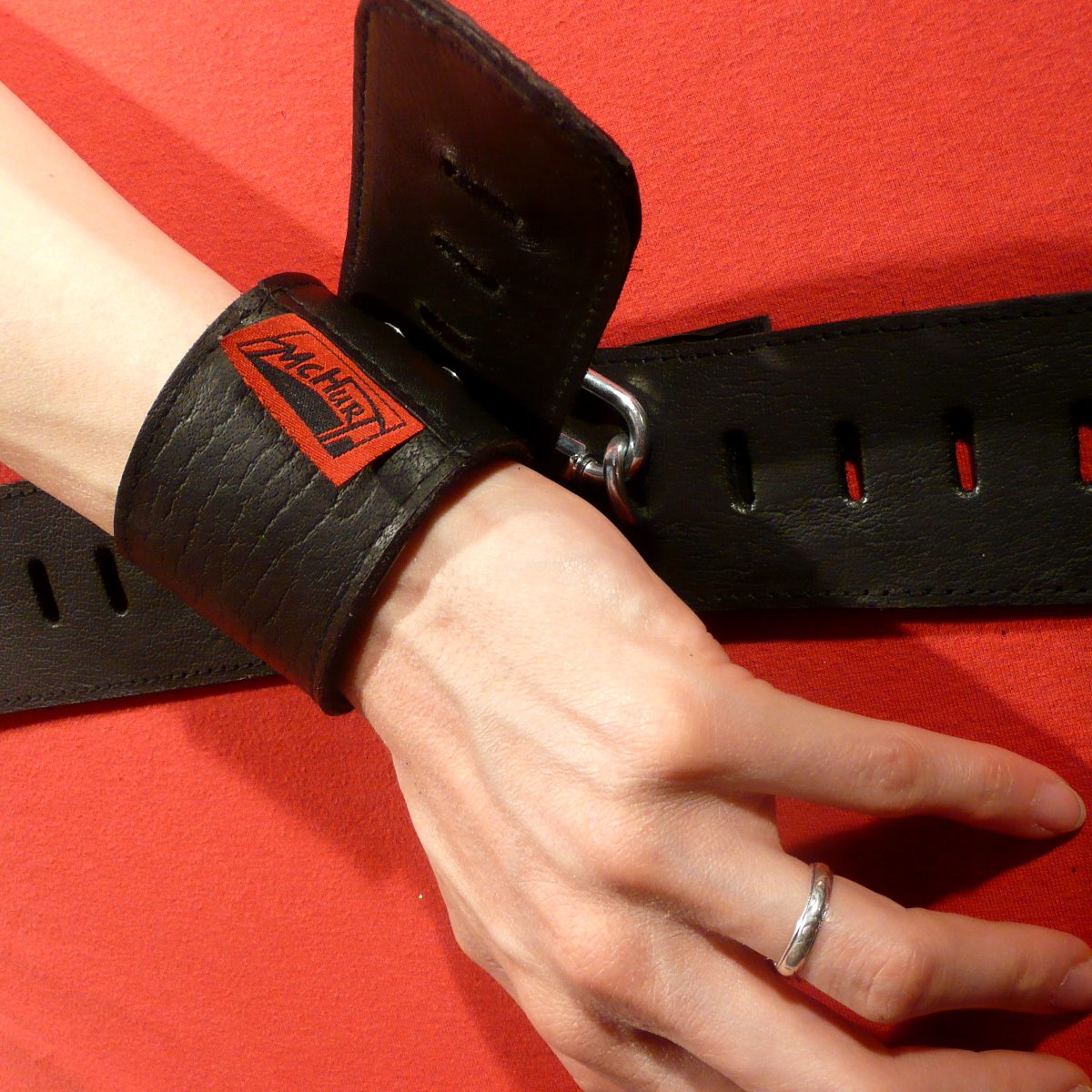 Werden zwei Manschetten so direkt miteinander verbunden, ist die Fesselung deutlich restriktiver als bei Fesselmanschetten mit D-Ringen, wie wir sie z.B. bei unseren Ihsan- oder Wotan-Manschetten verwenden, da die Ösen der Mala-Manschetten unbeweglich sind im Gegensatz zu den beweglichen D-Ringen.