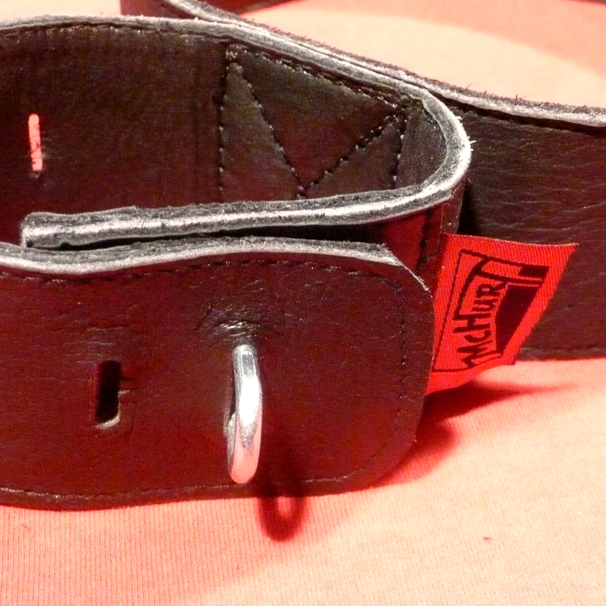 Zur Anwendung: Die Manschetten werden stramm um das Objekt gelegt und an der passenden Stelle mit dem Schlitz über die kleine unbewegliche Öse geschoben. Diese Öse schaut nun heraus und bietet Spielraum zur Aufnahme eines Karabinerhakens oder einer Schrauböse zur Sicherung.