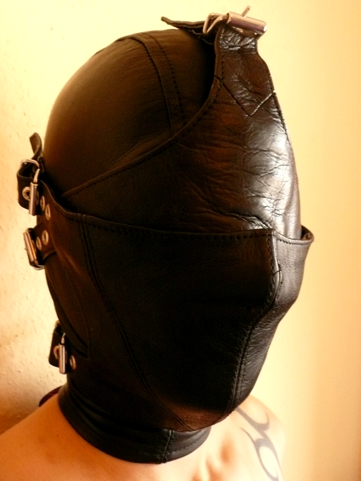 Ob Sie sich selbst anonymisieren oder Ihr Gegenüber durch verschiedene Ebenen von leichter Kopf-Fesselung und Sinnesentzug führen wollen, diese Maske bietet optimale Variationsmöglichkeiten.