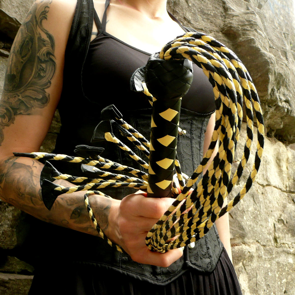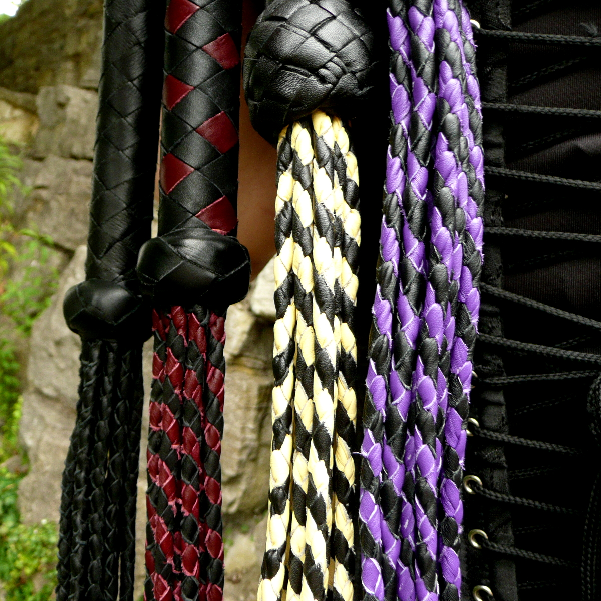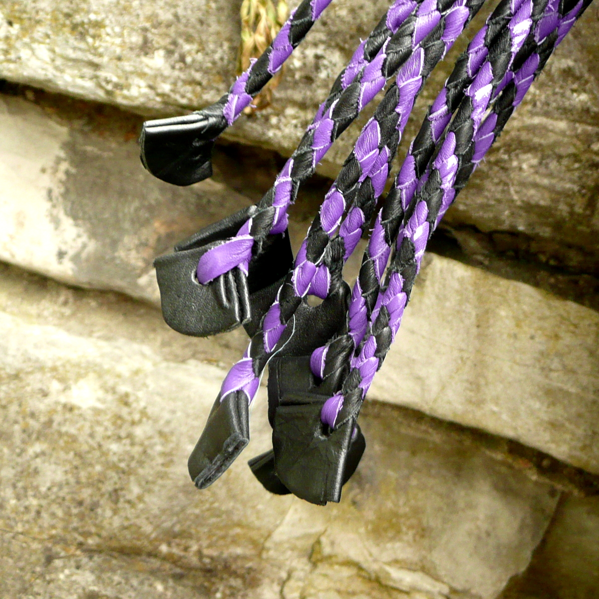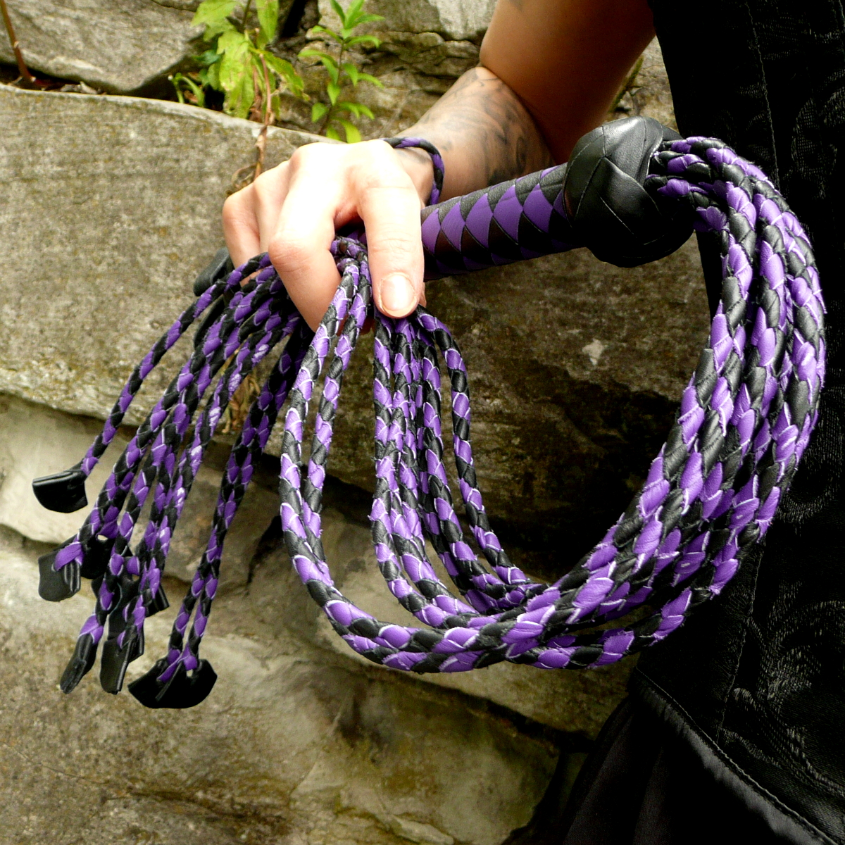 Die neun rund geflochtenen Tails haben am Ende eingeflochtene kleine Lederfliegen, die durchaus heftige Spuren hinterlassen können.