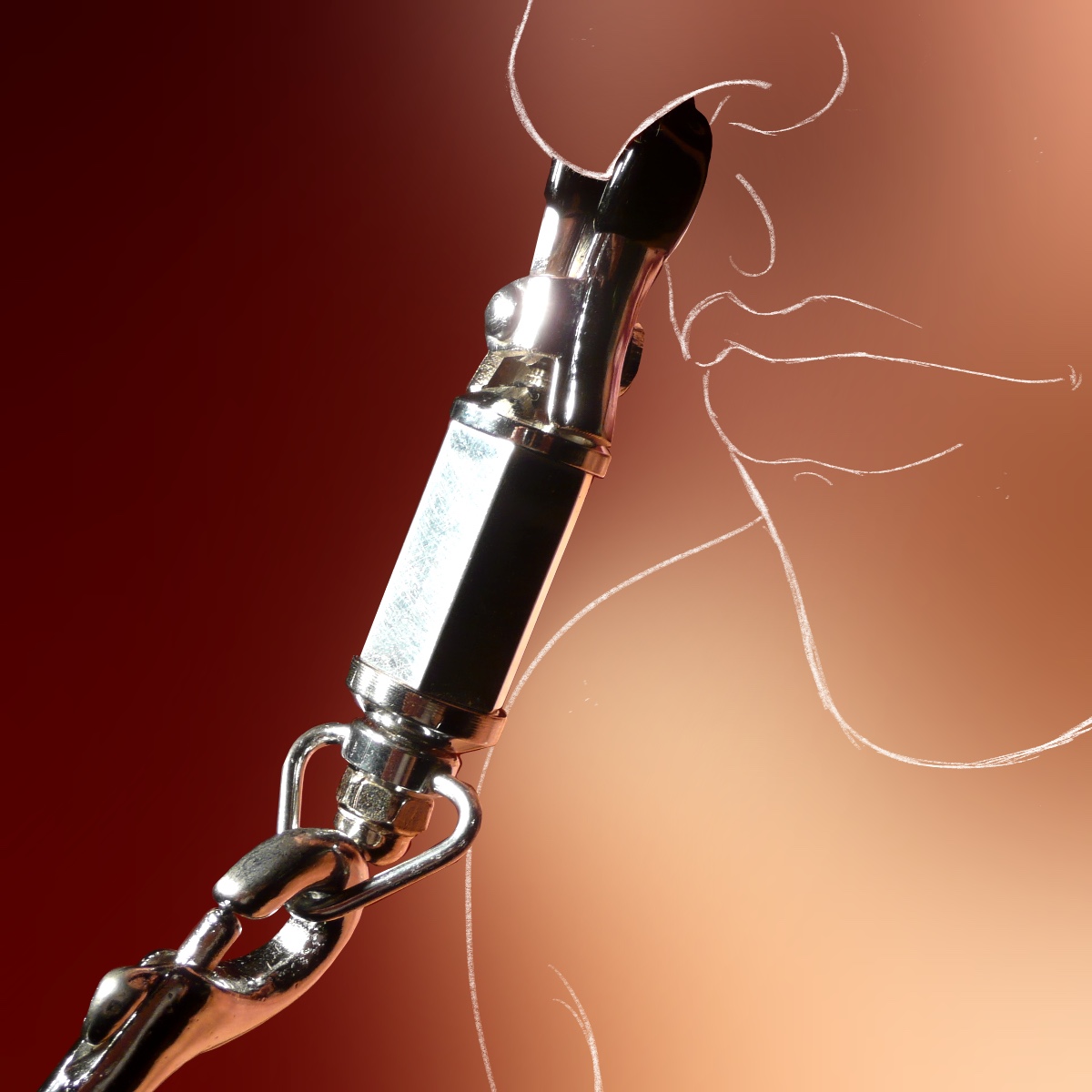 Gewicht (ca. 500 Gramm)  mit abschraubbarem Karabinerhaken und Bohrung im Boden zum Anschrauben von Zusatz-Gewichten Höhe ca. 9,3 Zentimeter (zuzüglich Halterung und Karabinerhaken) Durchmesser ca. 3 Zentimeter Hergestellt aus verchromtem Stahl