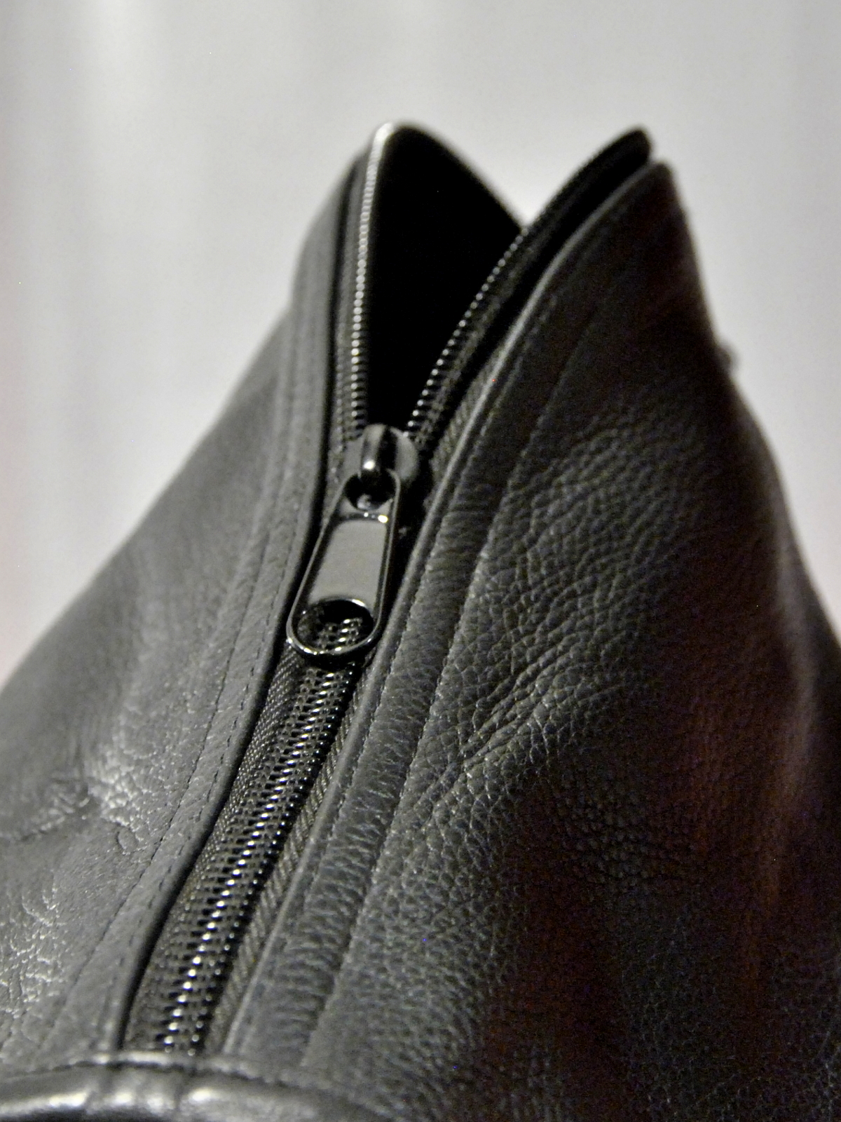 Im zweiten Schritt werden nun die vorderen und hinteren Klappen der Maske mit Hilfe der Reißverschlüsse geschlossen. Dies führt zu einer weiteren Abschirmung der Sinne, insbesondere des Gehörs.