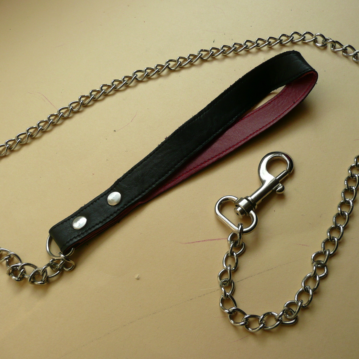 Führleine,bestehend aus Handschlaufe mit Kette und Bolzenhaken zum einfachen Anklinken. Gesamtlänge ca. 100 Zentimeter
