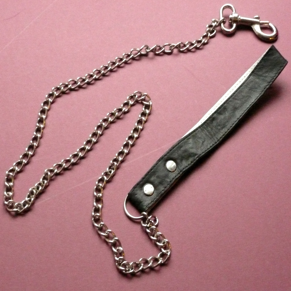 Passend zu den Manschetten und Halsbändern der Sefa-Serie fertigen wir diese Führleine mit einer Handschlaufe aus dem selben weichen Bekleidungsleder.