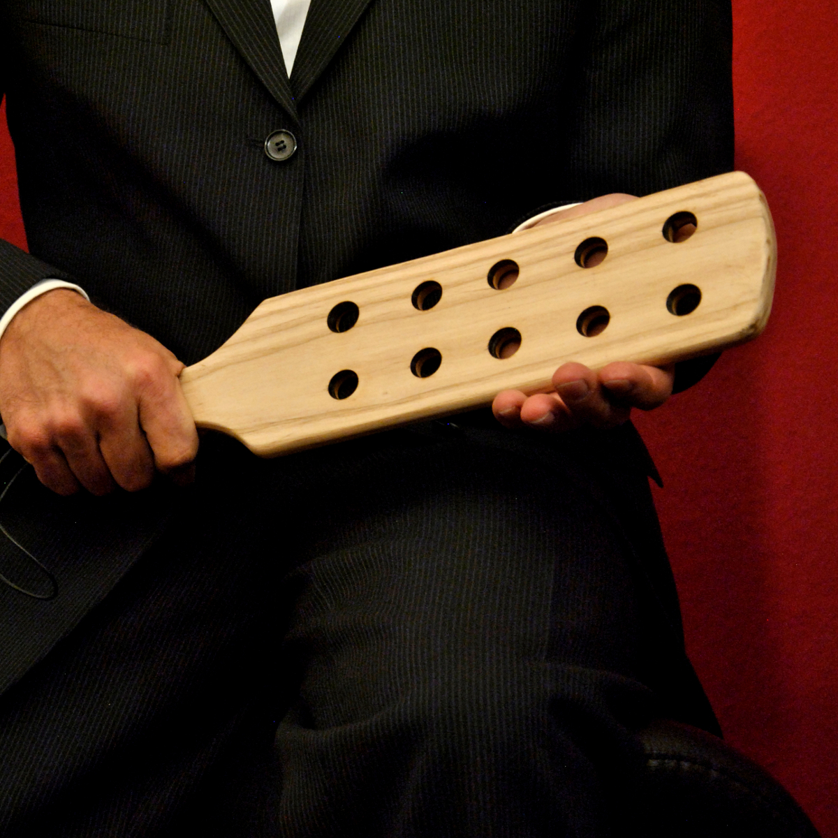 Dies ist unser größtes Holzpaddel. Mit einer Schlagfläche von ca. 29 x 10 Zentimetern eignet es sich typischerweise für fülligere Hinterteile, ein zierlicher Hintern könnte durchaus überfordert werden.