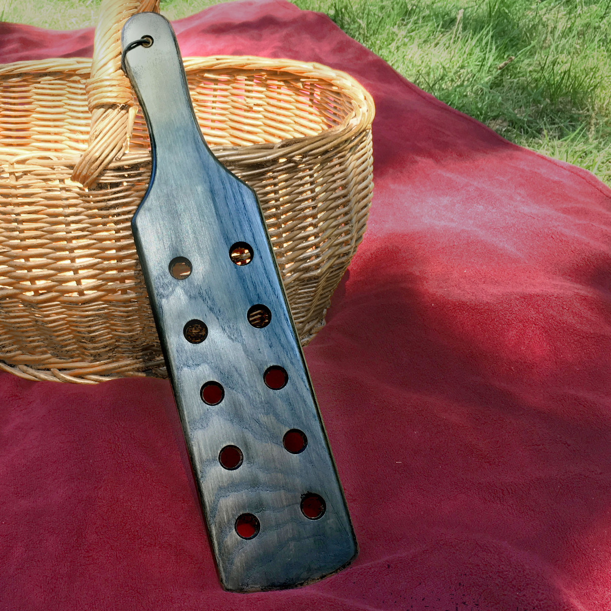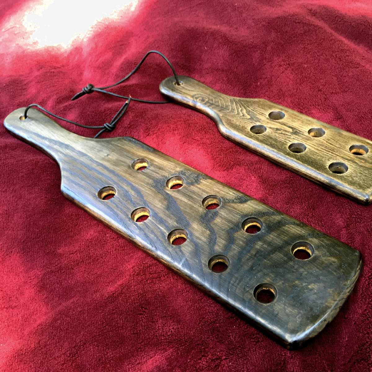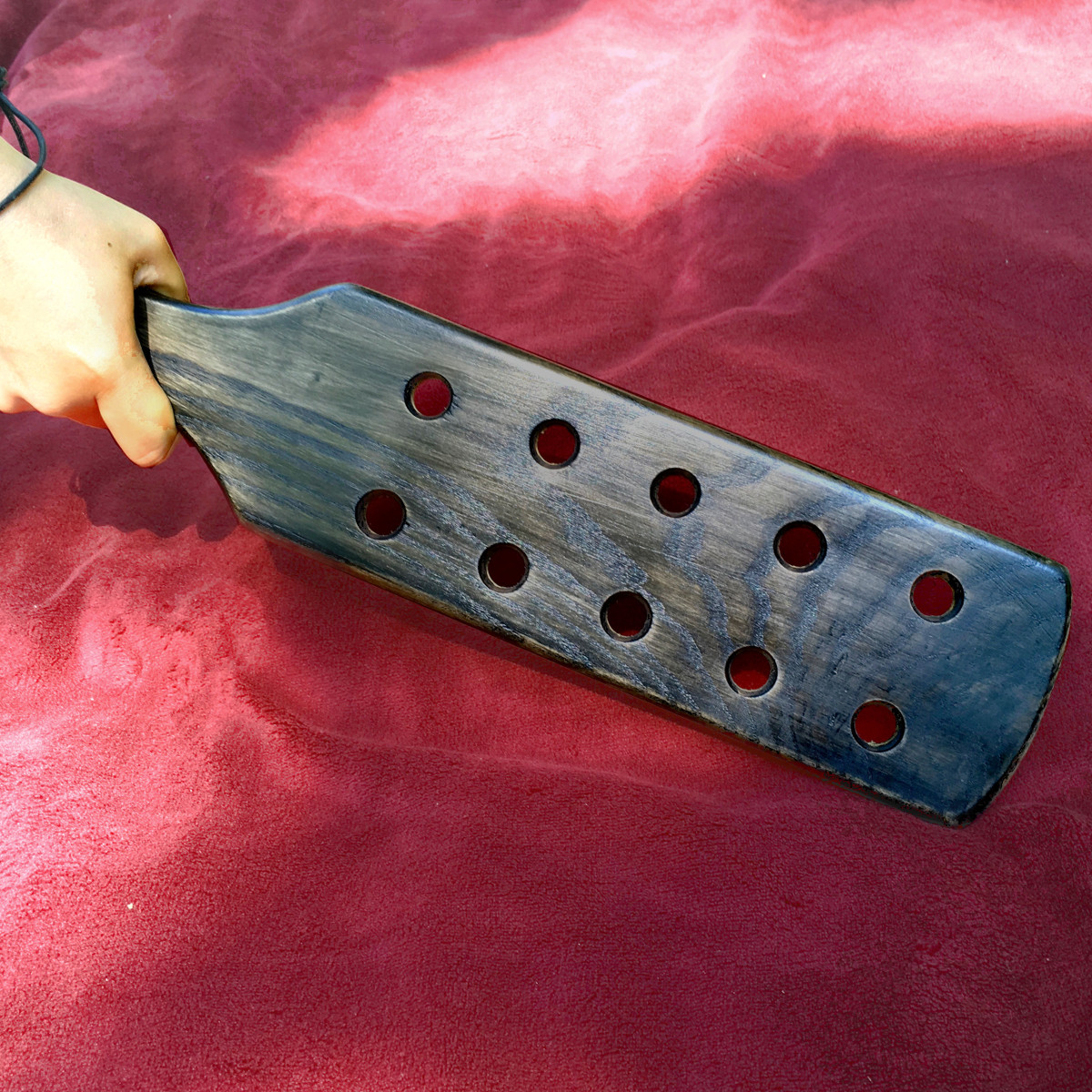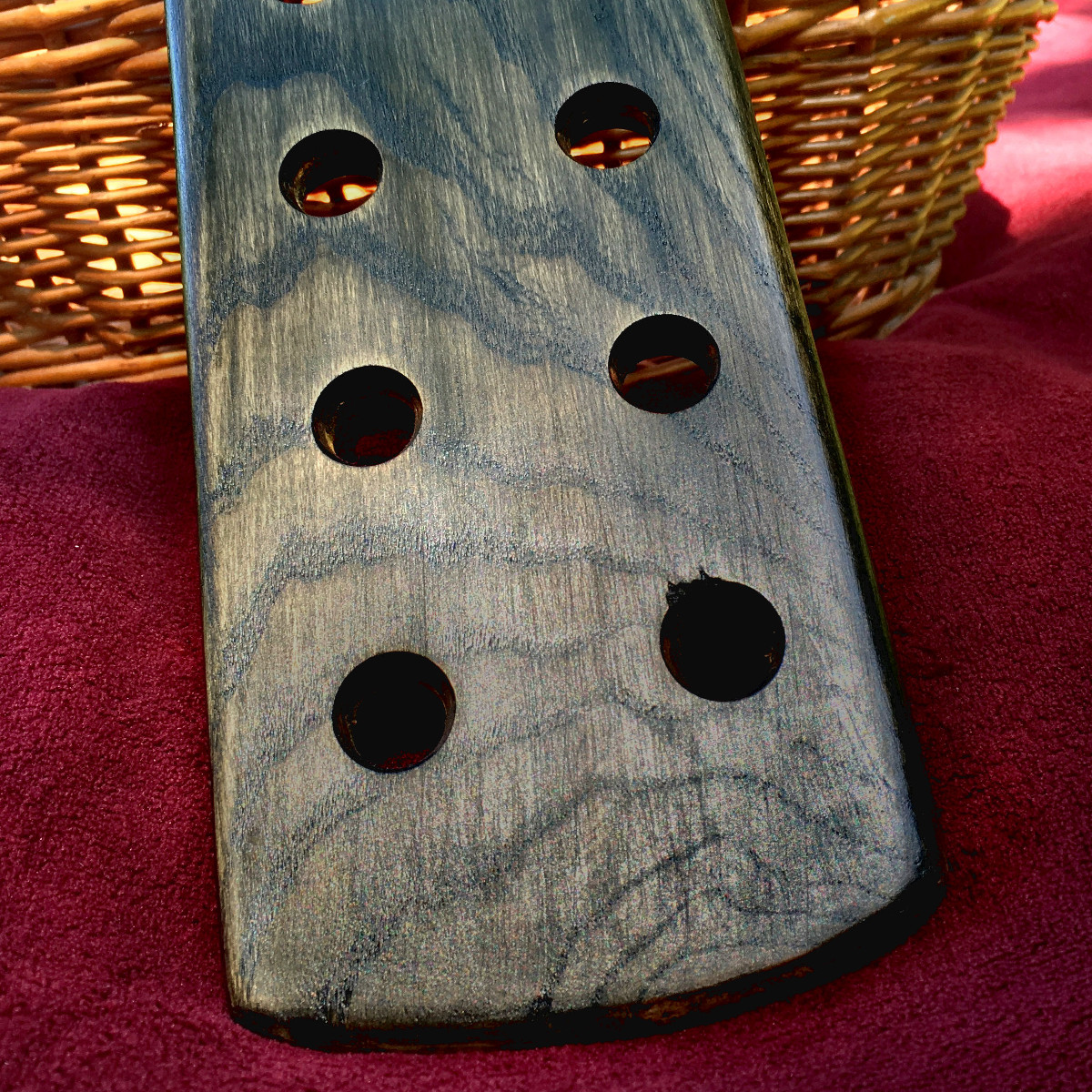 Dies ist unser größtes Holzpaddel. Mit einer Schlagfläche von ca. 29 x 10 Zentimetern eignet es sich typischerweise für fülligere Hinterteile, ein zierlicher Hintern könnte durchaus überfordert werden.