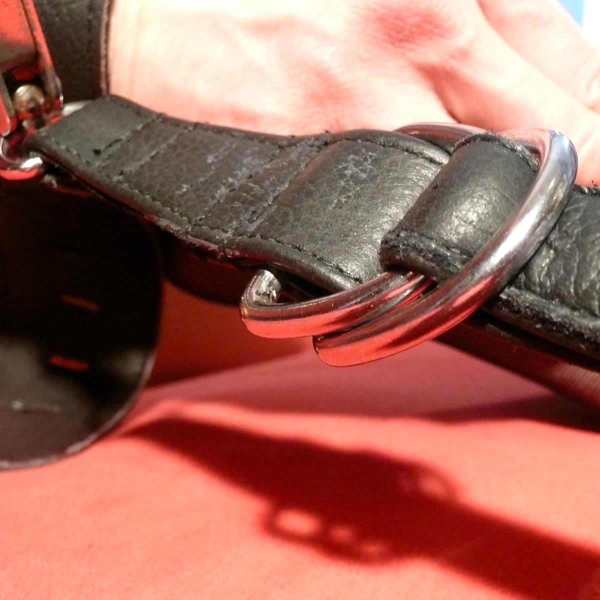 Um den Gurt wieder zu entspannen muß der Zug deutlich zurück genommen werden. Erst dann lassen sich die D-Ringe soweit lösen, daß der Gurt wieder zurück laufen kann und länger wird.