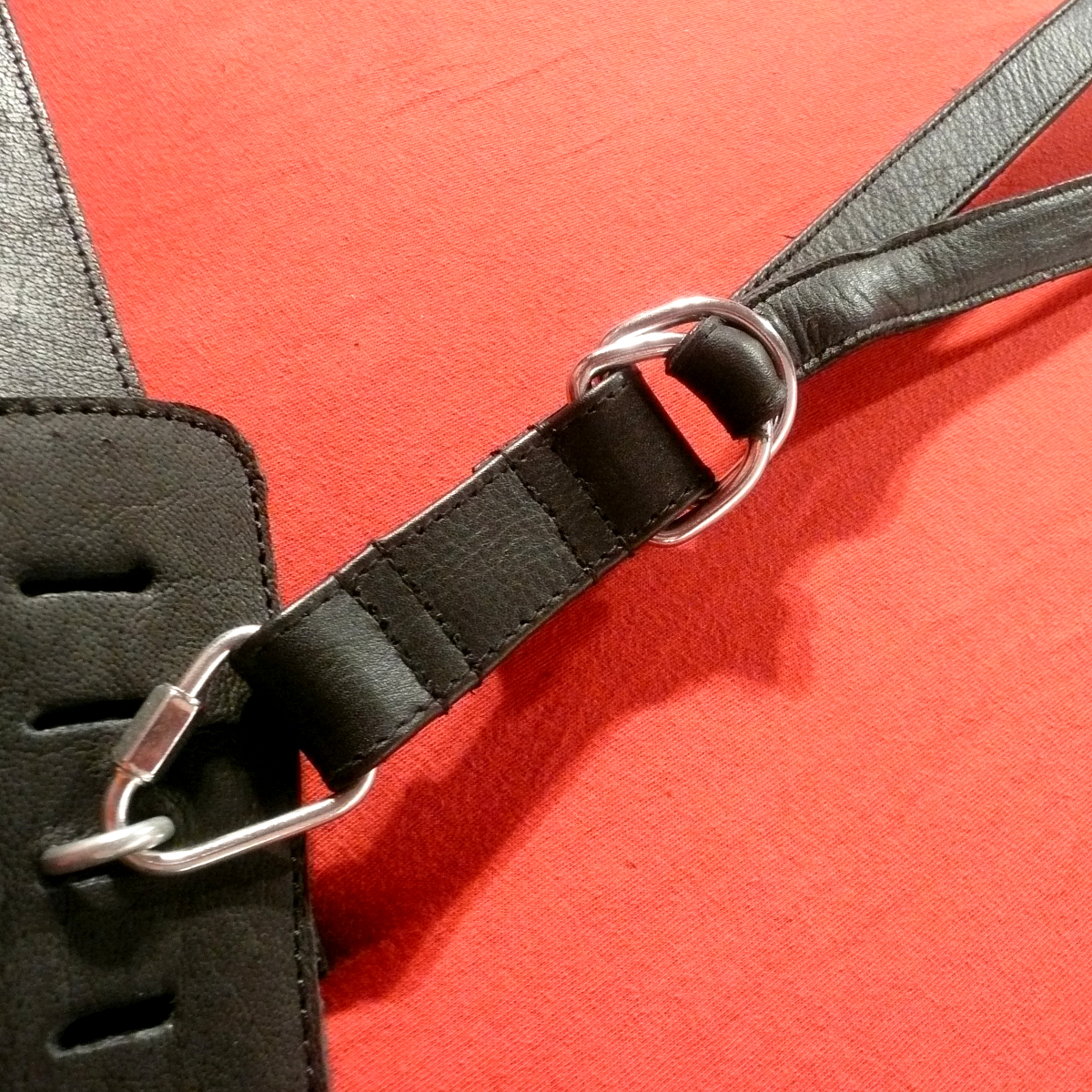 Dabei handelt es sich um einen Spanngurt, der zwischen zwei Objekten wie z.B. Fesselmanschette und Bettstrebe eingehakt wird und dann ganz nach Bedarf stufenlos enger gezogen werden kann, ohne irgendeine Schnalle öffnen zu müssen oder einen Mechanismus zu betätigen.