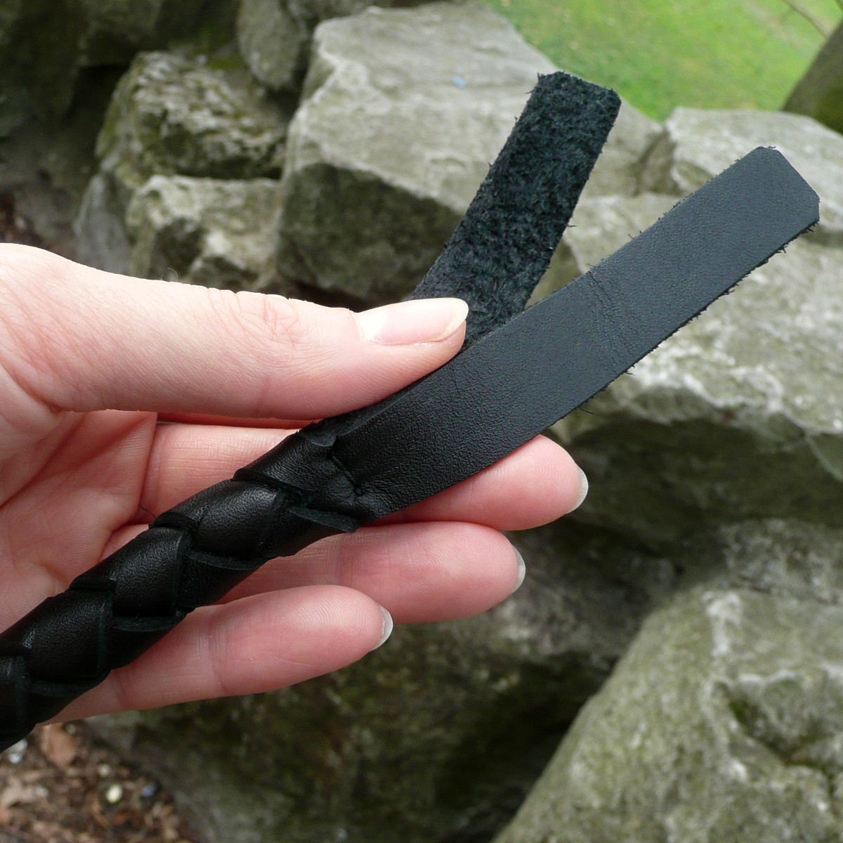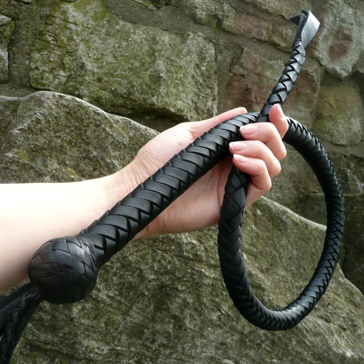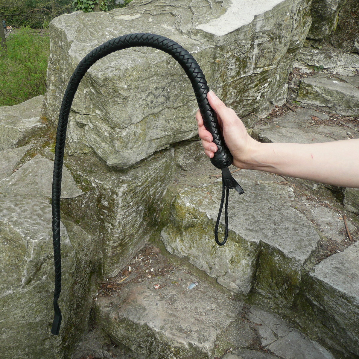Sie wird jedoch aus einem deutlich dickeren und derberen Rindleder geflochten und ist damit kräftger, schwerer und vor allem heftiger in der Anwendung.