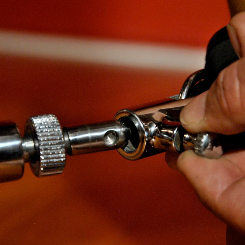 Die Spreizung können Sie nun durch Drehen des Mittelteils der Spreizstange stufenlos einstellen. Drehen in die eine Richtung lässt die beiden Seiten immer weiter ausfahren, drehen in die andere Richtung reduziert die Spreizung wieder. Und das ganze geht relativ schnell, da wir hier ein extra angefertigtes breites Gewinde nutzen.