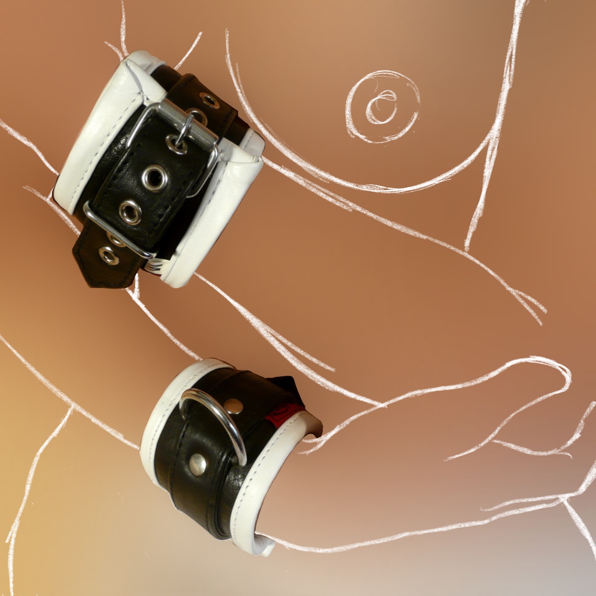 Passend zu unseren Skortan-Gurten gibt es jetzt auch Fessel-Manschetten! Die Skortan-Manschetten sind wie die Gurte gearbeitet, verfügen aber über einen zusätzlichen D-Ring, mit dem sie wie typische Fesselmanschetten miteinander verbunden oder an Möbel oder . . . oder . . . oder . . . fixiert werden können. Die D-Ringe sind mit Hilfe einer äußerst robusten, Nylon-verstärkten Lederöse in den Manschetten vernäht. Damit gehören die Skortan-Manschetten durchaus in den Bereich Heavy-Duty, ohne das die Optik dies gleich vermuten lässt. Die Skortan-Manschetten sind dank ihrer Innenseite aus Velourleder auch ohne Fütterung sehr angenehm tragbar und durchaus für Langzeit-Fesselungen geeignet. Skortan-Manschetten sind in drei Größen erhältlich: - Medium (passend von 14 bis 22 Zentmeter Umfang)- Large (passend von 22 bis 36 Zentimeter Umfang)- Extra-Large (passend von 32 bis 68 Zentimeter Umfang) Breite der Manschetten ca. 5 Zentimeter'Hergestellt aus Rind-Nappaleder und Rind-Velourleder Lieferumfang: 1 Paar Skortan-Fesselmanschetten entsprechend der gewählten Größe (ohne weitere im Bild gezeigte Manschetten, ohne Verschluß- und Verbindungselemente, diese bitte separat bestellen!)