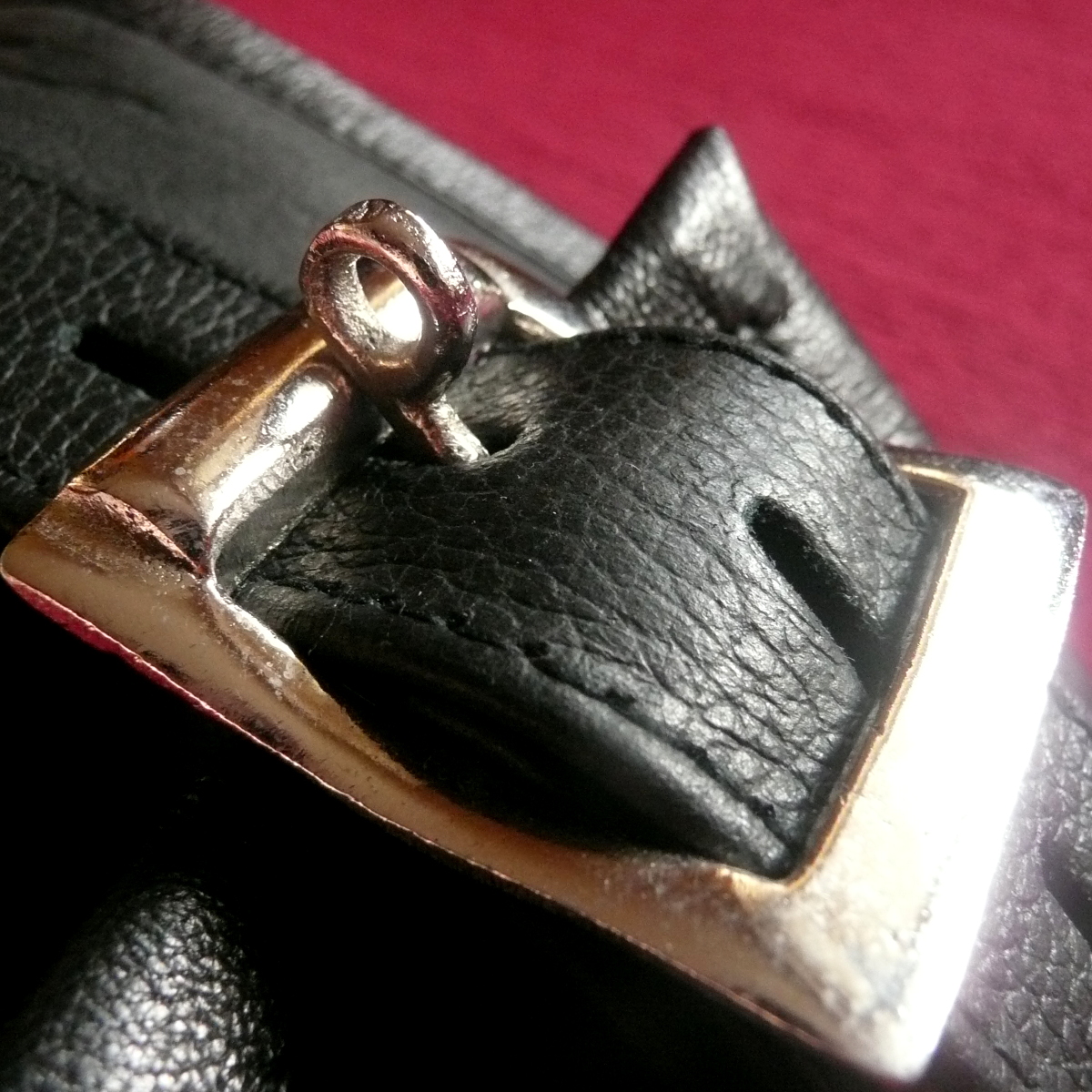 Dem Format des Dorns sind die schlitzförmig verlängerten Löcher der Riemen geschuldet. Dies führt theoretisch zu einer leichten Einschränkung der Flexibilität bei der Verstellung der Manschettenweite, allerdings hält sich diese auf Grund des von uns verwendeten weichen Leders für die Riemen so weit in Grenzen, daß wir diese Verschlußmöglichkeit nun auf vielfachen Kundenwunsch anbieten können.